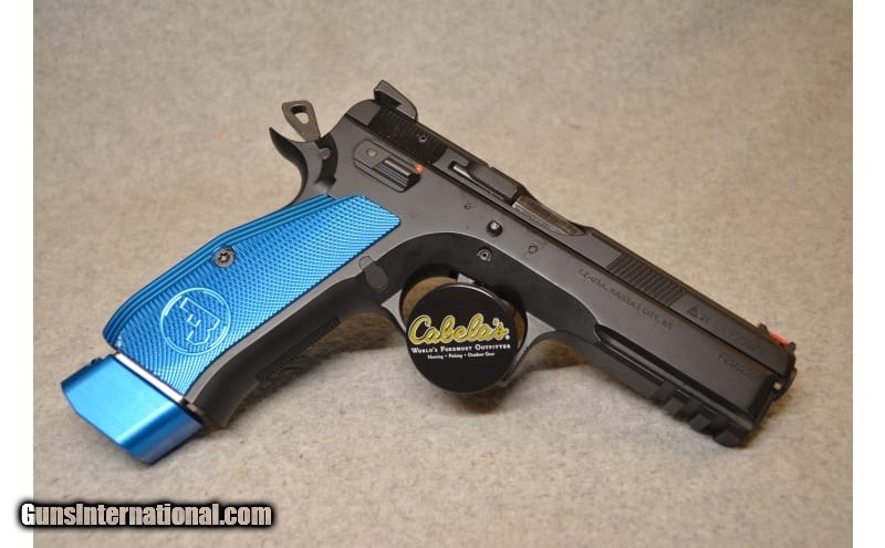 Description: This is a CZ 75 SP-01 semi-auto pistol with a 4.5" barrel in 9mm. This pistol features an accessory rail and blue grips. There are small handling scratches on the matte black slide. The blue grips have a small dent on the right side at the bottom. The bottom of the magazine has some scuff markings as well. This pistol does come on with its original hard case and an extra magazine, as pictured. 9mm Luger SOLD Barrels: 4.5 inches Item Location: Hazelwood, MO |