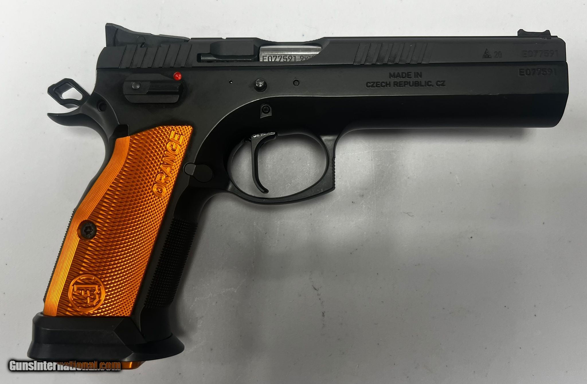 Description: Guns Listing ID: 587245 No box. Comes with 3 magazines. The CZ 75 Tactical Sport Orange is a competition-oriented variant of the legendary CZ 75 family, tuned for high performance in IPSC/USPSA and precision target work. Built with a long 5.3\" barrel, tuned trigger, extended sights and controls, and a race-ready ergonomics package, the Tactical Sport Orange is engineered for fast, accurate shooting and excellent recoil management while retaining the classic steel-frame feel of the CZ 75 line. Gun is in excellent condition. See photos for details! Manufacturer: CZ Model: CZ 75 TACTICAL SPORT Caliber Info: 9MM LUGER (9X19 PARA) Condition: Used - Non-Certified Barrels: 5.4" BARREL Action: SINGLE SHOT Finish: BLACK Weight: 3 LBS. Price: $1,899.99 Contact Seller |