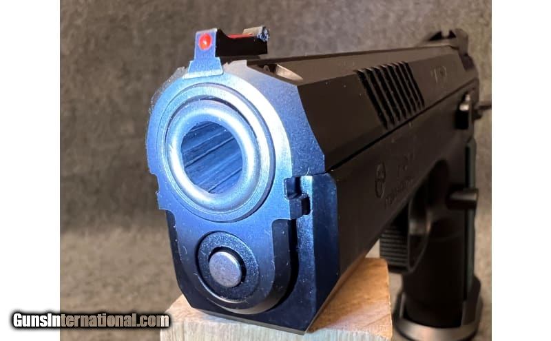 Description: This semi-auto pistol is a CZ 75 TS 2 chambered in 9MM Luger. One of the major selling points of the CZ 75 and its progeny—including the TS 2—is the slide rides on rails inside the frame instead of outside. This allows for a low bore axis and causes the pistol to recoil more straight back rather than back and upward. This new slide on the TS 2 makes the bore axis even lower and further reduces muzzle flip. Mimicking the slide profile of the Shadow 2, reciprocating weight is focused as low as possible. Paired with a redesigned frame and improved ergonomics, muzzle flip is less noticeable than ever. Front and rear cocking serrations make slide manipulation easy and a set of fixed target sights with a fiber optic front are robust enough to withstand the rigors of competition. The rear sight is in a dovetail and can be drifted for windage. It has an ambidextrous safety. Aluminum grips, aggressive checkering and a healthy magwell cap it off, and the TS 2 will accept the wide variety of custom parts already available for the Tactical Sport platform. There's a generous aluminum magazine well at the base of the grip. If you don't like it, it's easily removed by turning out the set screw at the back of the funnel. The CZ TS 2 model introduces a new level of refinement. It features a sport trigger with a quick reset. The technologies used to create the new model allow for precise tolerances down to a hundredth of a millimeter for a much tighter parts fit, resulting in both increased shooting accuracy and an extended service life. The improved ergonomics and intelligent distribution of mass enable refined operation, even when shooting fast. With the minimal muzzle rise, the return is prompt and natural. Thanks to its improved build and customization options, the CZ TS 2 has the potential to satisfy a wide range of customers from beginner and intermediate shooters in the IPSC Standard Division and USPSA, but also hobby target shooters with a large-caliber pistol. It comes with hard case, tools, owners manual, cable lock, bore brush, speed loader, slotted nylon cleaning rod, three 20-round magazines, etc. 9mm Luger SOLD Metal Condition: This is in new in the box condition. Wood Condition: This is in new in the box condition. Bore Condition: This is in new in the box condition. Barrels: 5.28 inch barrel Triggers: Crisp single action trigger Stock Dimensions: Overall length 8.86 inches Weight: 3 lb Sights: "Fixed robust target sights with a fiber optic front sight, rear sight is in a dovetail and can be drifted for windage Item Location: Wichita, KS |