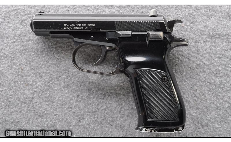 Description: The CZ 82 is a compact conventional blowback operated pistol in the 9x18 Makarov cartridge. Both the frame mounted safety and magazine release are ambidextrous. 9x18 Makarov SOLD Chambers: 9mm Makarov (9x18) Metal Condition: Shows moderate holster & carry wear Bore Condition: Bright polygonal bore Barrels: 3.75" Polygonal rifling Triggers: Single/Double Action Weight: 28 oz. Sights: "Fixed blade front, dovetailed notch rear Item Location: Grand Junction, CO |