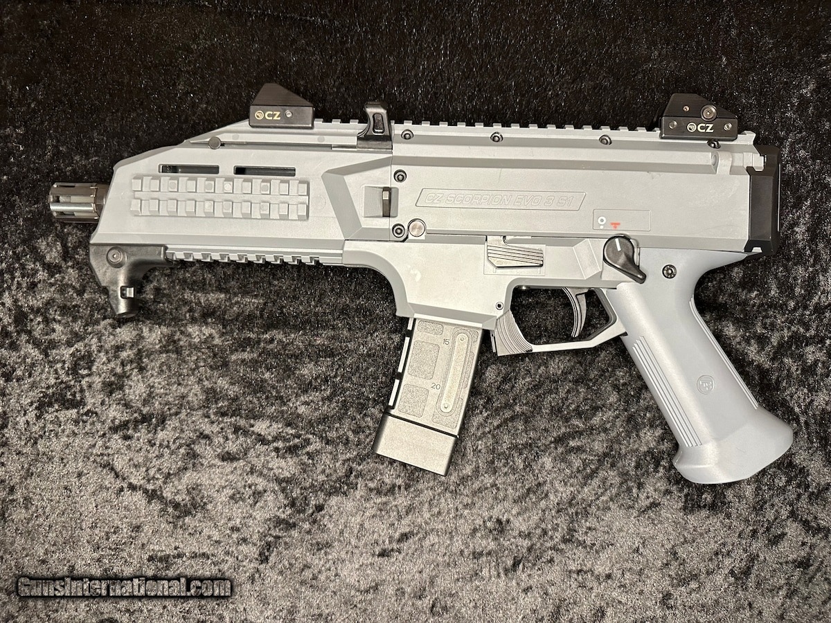 Description: Guns Listing ID: 898367 CZ Scorpion Evo 3 S1 in a grey/blk finish. In great condition with no scrapes or scuffs. Includes 1-20 RND magazine. SOLD Manufacturer: CZ Model: CZ SCORPION EVO 3 S1 Caliber Info: 9 X 19 Condition: Used - Non-Certified Barrels: 7.72 BARREL Finish: GREY & BLACK |