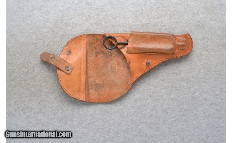 Description: This CZ Model CZ52 is a right hand semi-auto pistol in 7.62x25mm Tokarev Cal. It has a 4.5 inch barrel with a rear serrated slide. A blade front and notch rear sight. The grip is a ribbed brown Bakelite. It has a ringed serrated hammer. It comes with a leather holster. 7.62x25mm Tokarev SOLD Chambers: Semi-Auto 7 round magazine. Metal Condition: Very good. Minor handling marks and minor wear. Bore Condition: Excellent. Barrels: 4.5 inch barrel with a rear serrated slide. Weight: 35 Oz. Sights: Blade front. Notch rear. Item Location: Avon, OH |