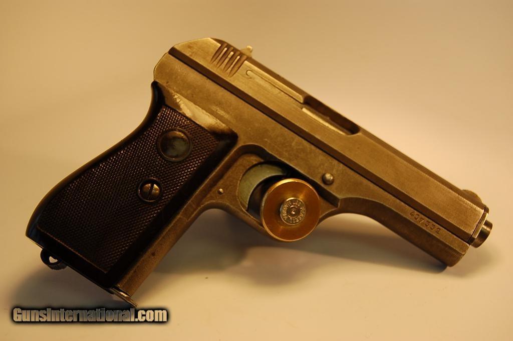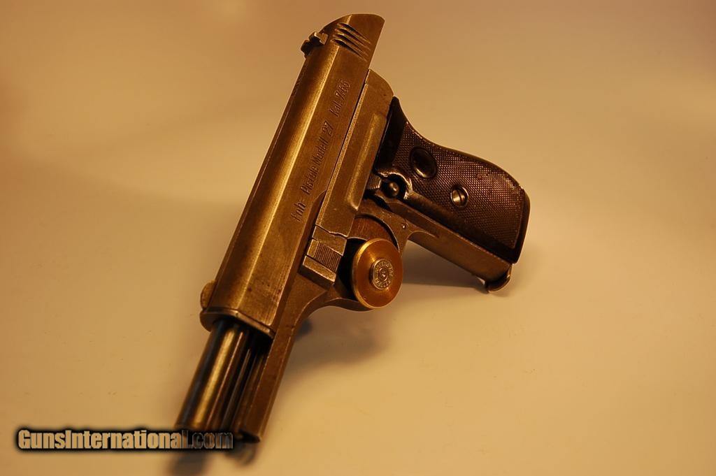 Description: We have an “fnh” code variation, .32 ACP, CZ 27 (vz. 27) pistol in okay condition (65%+). This pistol was produced in the later stages of WWII in Nazi occupied Czechoslovakia. The pistol has the perfect phosphate finish that was in the later part of the war along with grips without the CZ emblem. The pistol is in excellent condition. Serial Number: 407,552 (right on frame and top of slide). Serial numbers for “fnh” CZ 27 pistols range from approximately 261,000 to 476,000. Perfect mechanical condition. The trigger, hammer, and extractor retain most of their original straw color. This pistol displays a Nazi-German Military “eagle/WaA 76” WaffenAmt acceptance mark (on right frame, top slide, and barrel). The barrel is stamped with an “eagle clutching a swastika” German Military test proof mark (no serial number). The top of the slide is marked with the Nazi proof followed by serial number (407,552). Left side of the slide is marked “fnh Pistole Modell 27 Kal. 7,65”. This pistol is fitted with original one piece checkered Bakelite (early plastic) excellent grips with no cracks or chips. The pistol is complete with an original factory magazine stamped on the bottom of the base “P. Mod. 27”. In an effort to hide the location of factories producing weapons, in June 1941, the Germans introduced a letter code system to replace factory names. The ?eská zbrojovka [CZ] factory received the code letters “fnh”. In the case of the CZ 27, it was not used until mid-1943. The “fnh” was added to the left slide marking and the “BÖHMISCHE WAFFENFABRIK A.G. IN PRAG” marking was removed from the slide top. Early “fnh” marked pistols still had the CZ logo on the grips, which was soon removed. This is a rather common WW2 German-issued pistol in uncommonly nice condition. CZ 27 was one of the most widely-issued non-German pocket pistols of WW2. They are extremely well-made and overbuilt. While most CZ 27 variants are quite common, it is difficult to find pistols like this one in such exceptional condition. The finish on early CZ 27 pistols, with serial numbers ranging from 20,500 to 230,000, was bright blue. As the production progressed, the finish changed to dull blue, then to half blue and half phosphate, and finally to all phosphate. In March 1939, Germany occupied all of Czechoslovakia, and in early 1941, all CZ 27 pistol production was diverted to the German war effort. Czechoslovak sources put the beginning serial number of German Military production at 20,500. Between 620,000 and 650,000 CZ 27 pistols were manufactured in total, 452,500 of those under German occupation. This pistol is a fine example of an occupation-made CZ. SOLD Curio/Relic: Yes Manufacturer: CZ Model: 27 Serial Number: 407552 Caliber Info: 7.65 Condition: 65% |