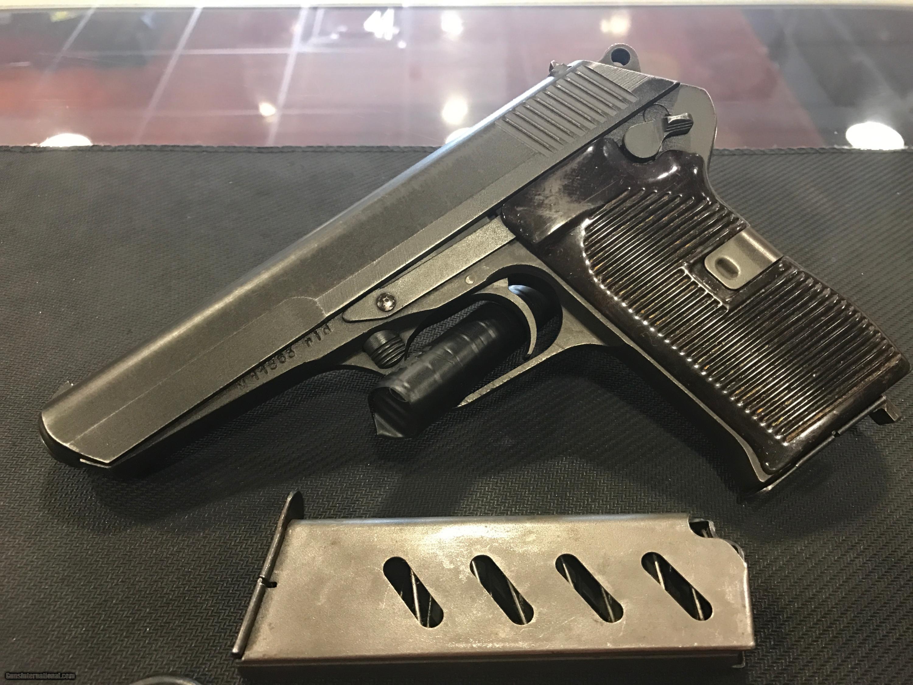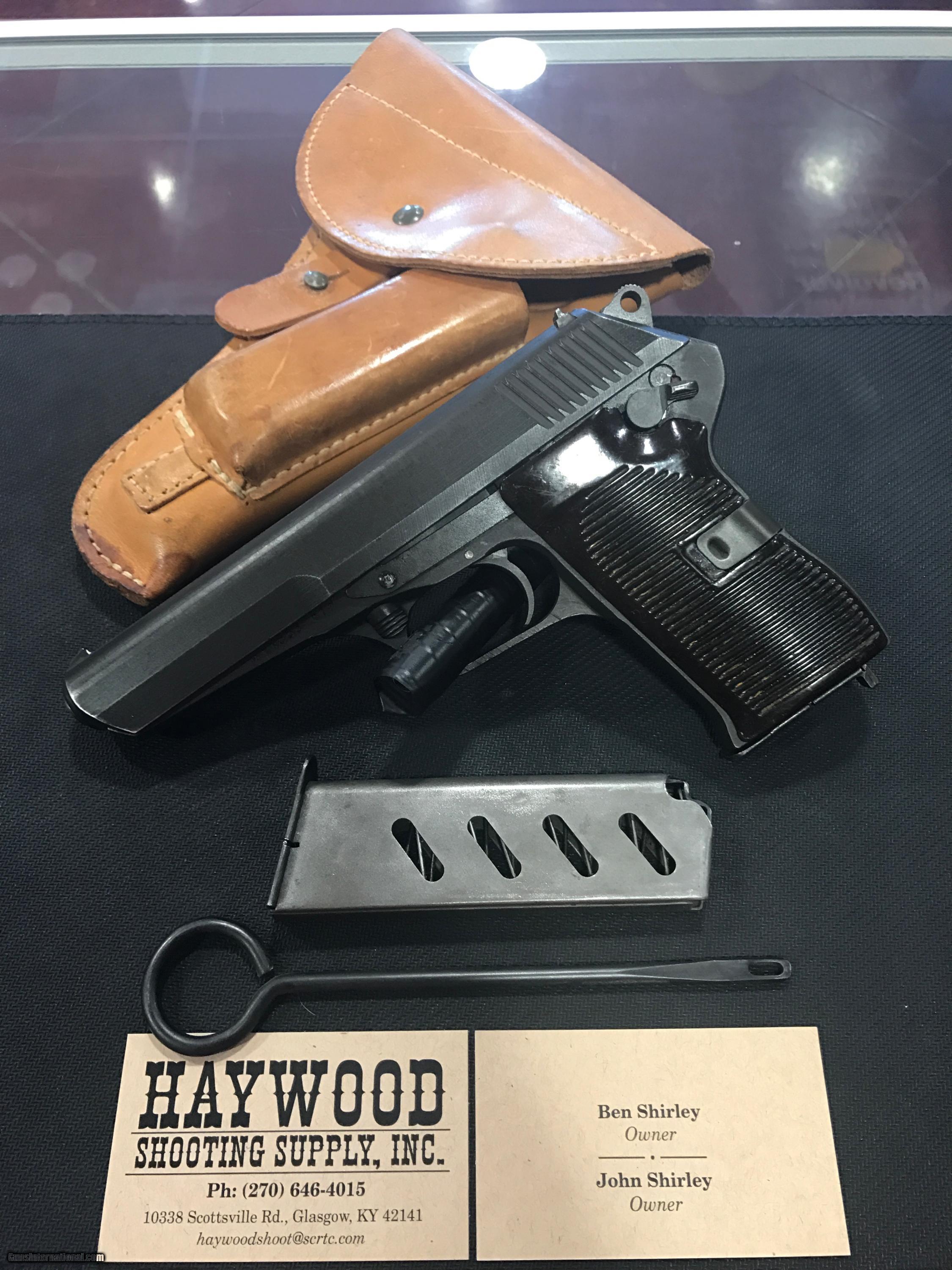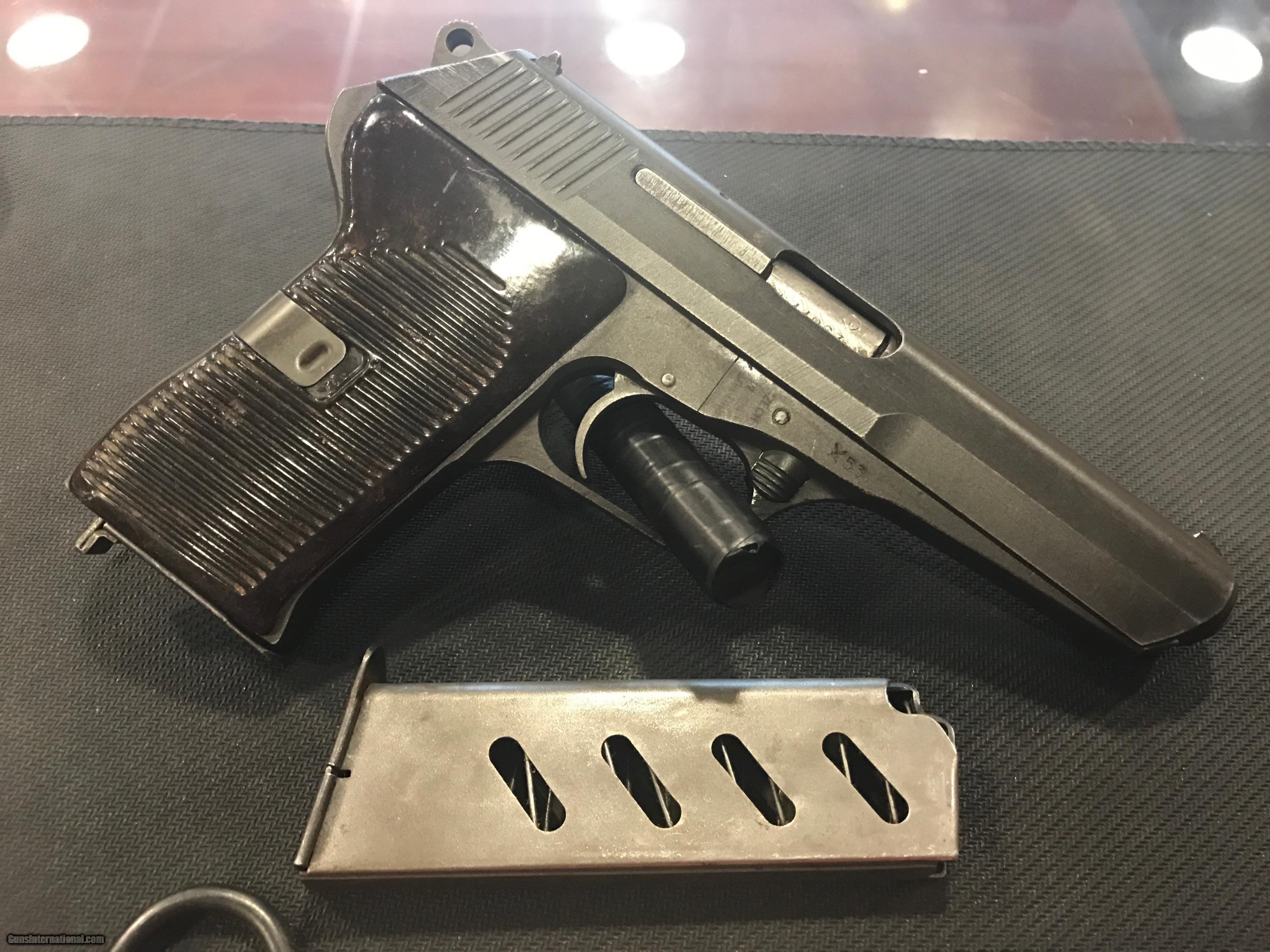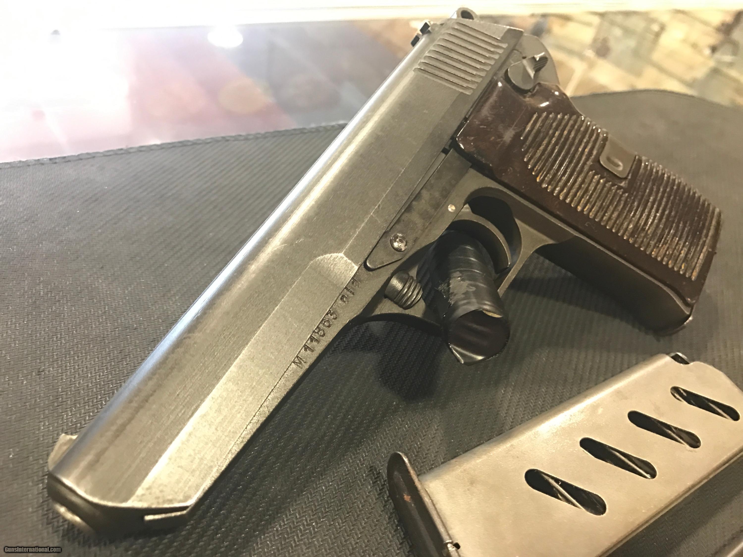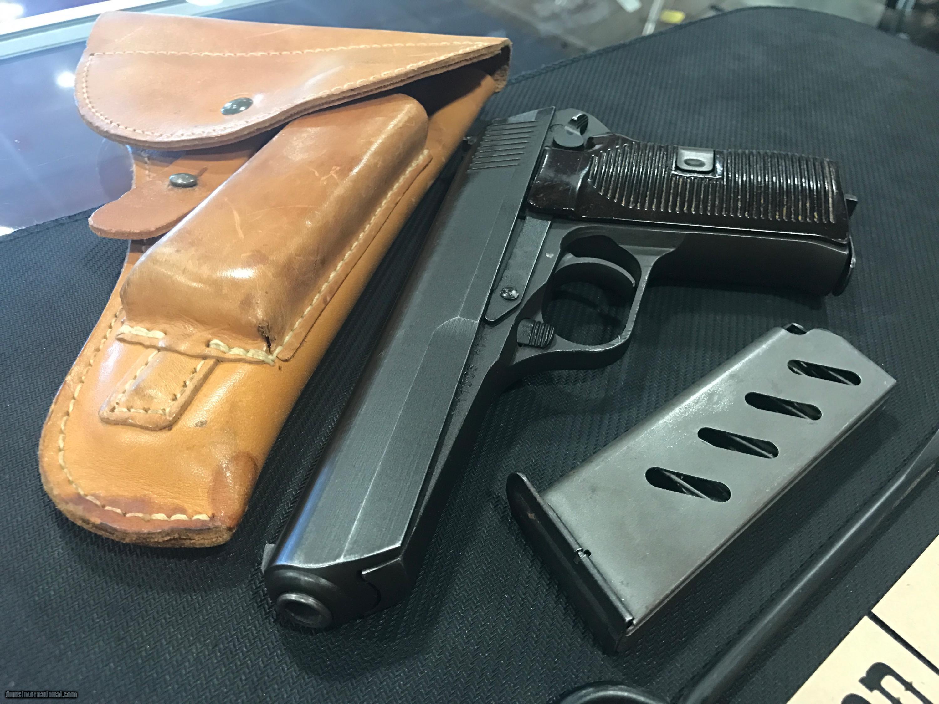 Description: THIS IS A VERY NICE CZ MODEL 52 PISTOL 7.62 X 25 CALIBER. THIS GUN IS IN GREAT CONDITION FOR ITS AGE. THIS GUN COMES WITH A BROWN LEATHER HOLSTER, TWO MAGAZINES AND A CLEANING ROD. THIS GUN IS ALL ORIGINAL AND WAS MANUFACTURED IN 1953 . VERY NICE!! FREE SHIPPING ***SORRY, NO SALE TO CALIFORNIA*** SOLD |