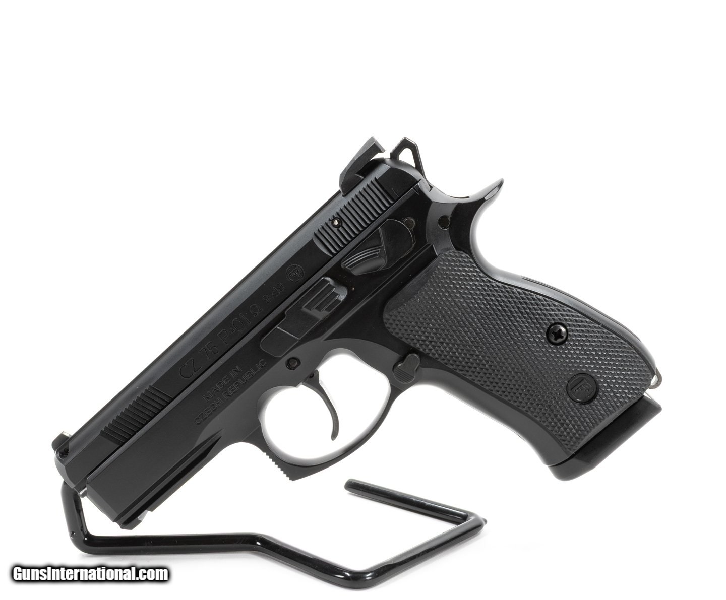 Description: Guns Listing ID: 545213 Discontinued CZ P-01 Omega 9mm 15+1 w/ Box & 2 Magazines Manufacturer: CZ Model: P-01 Omega Condition: Very Good Caliber: 9x19mm Action: DA/SA Barrel Length: 3.75\" Capacity: 15+1 Sights: Nights Sights, adjustable rear Size: Compact Finish: Black Grips: Black, rubber Other Features: Ambi safety, accessory rail, metal frame. Origin: Czech Republic Inventory: Firearm, (2) 15-rd magazines, original hard case, manual. UPC: 8068039229 • Please be aware that we have not test fired this gun. Unless otherwise stated, expect this firearm to fire and function safely. SOLD Manufacturer: CZ Model: P-01 OMEGA Caliber Info: 9MM LUGER (9x19 PARA) Condition: Used - Non-Certified Barrels: 3.75 BARREL Action: SEMI AUTOMATIC Finish: black |