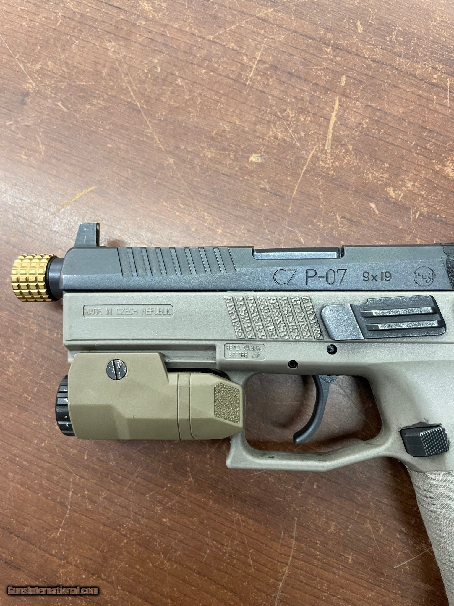 Description: Guns Listing ID: 1352696 Great shape overall Threaded barrel Inforce tact light 1-15rnd mag 1-15+2 rnd mag FDE tape on handle SOLD Manufacturer: CZ Model: P-07 Caliber Info: 9MM LUGER (9X19 PARA) Condition: Used - Non-Certified Barrels: 5 BARREL Finish: FDE |