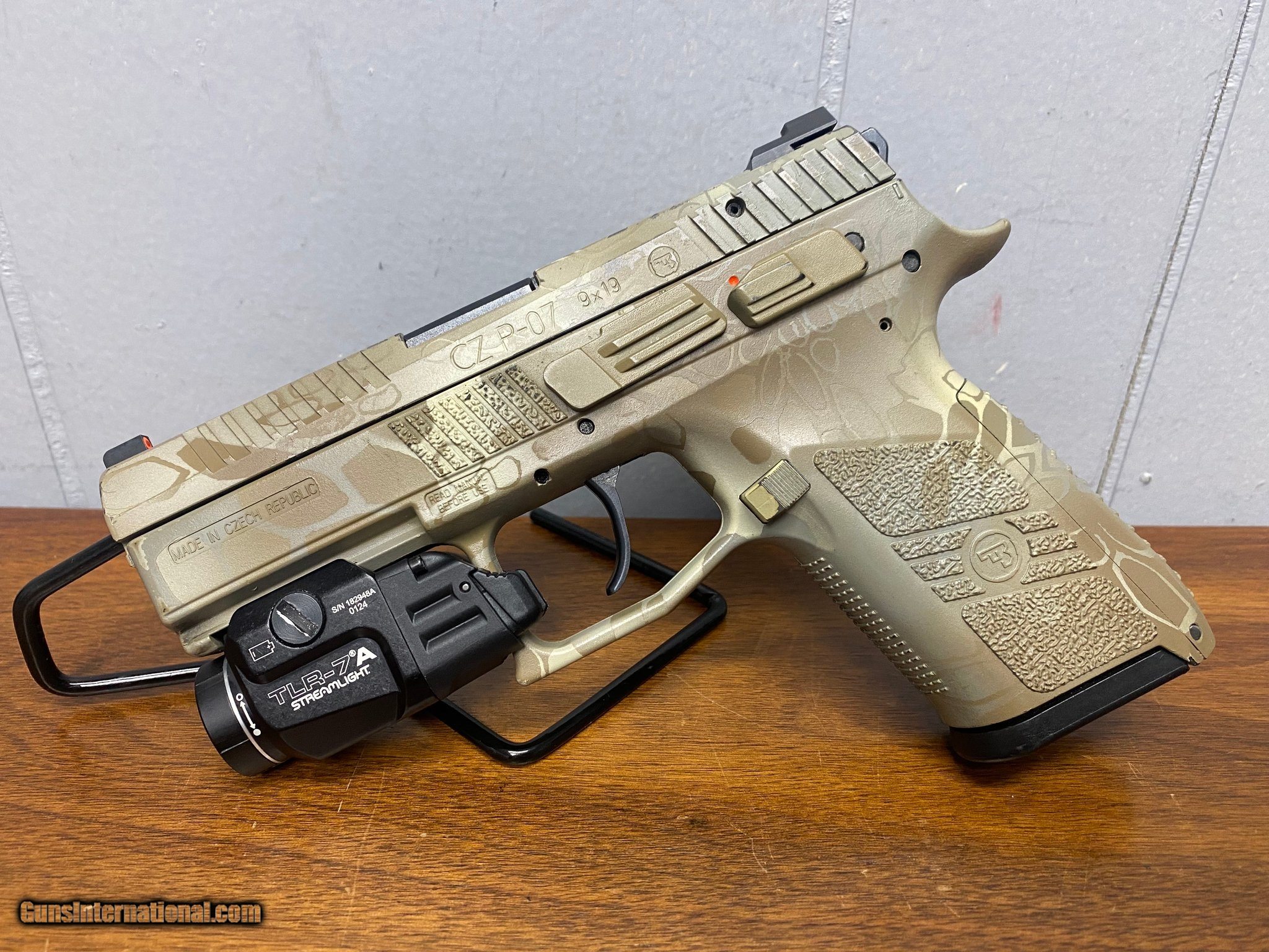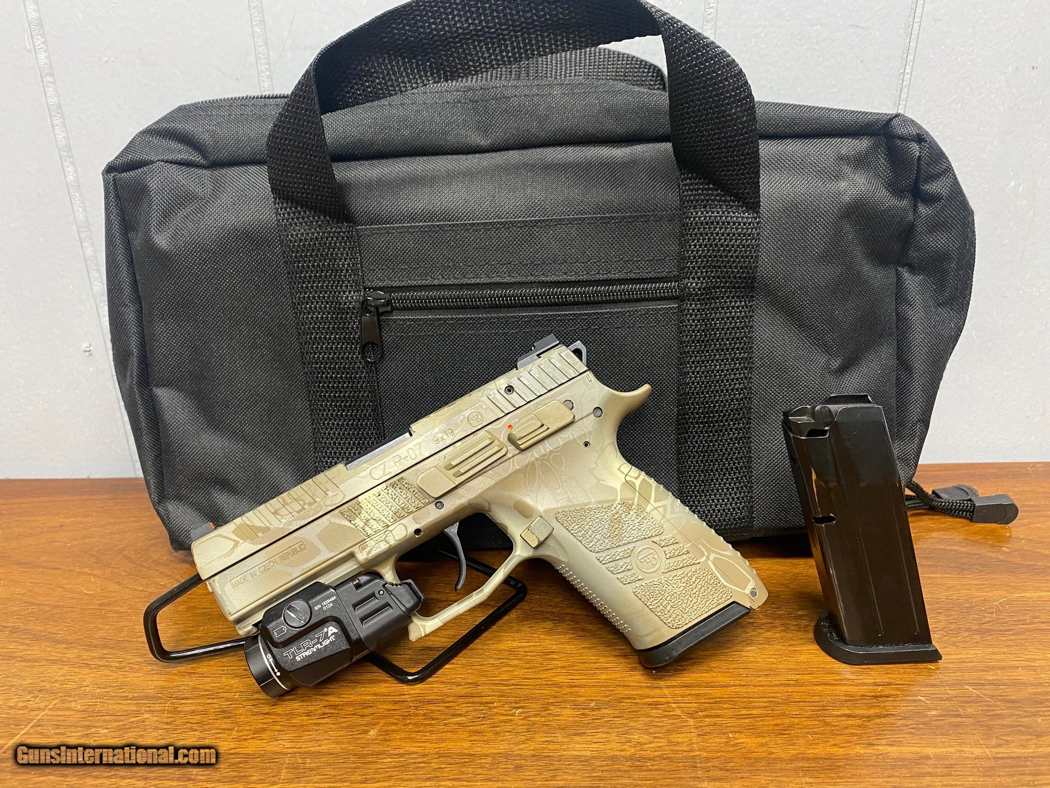 Description: Guns Listing ID: 473207 CZ P-07 chambered in 9mm with a Streamlight TLR-7A flashlight. This has a Kryptek Camo wrap on it. However, it has wore off in certain areas (as seen in photos). Included with the purchase is a plain black range bag and 2 magazines. SOLD Manufacturer: CZ Model: P-07 Condition: Used - Non-Certified Barrels: 3.75 Gauge Info: 9MM LUGER (9x19 PARA) Finish: KRYPTEK CAMO |