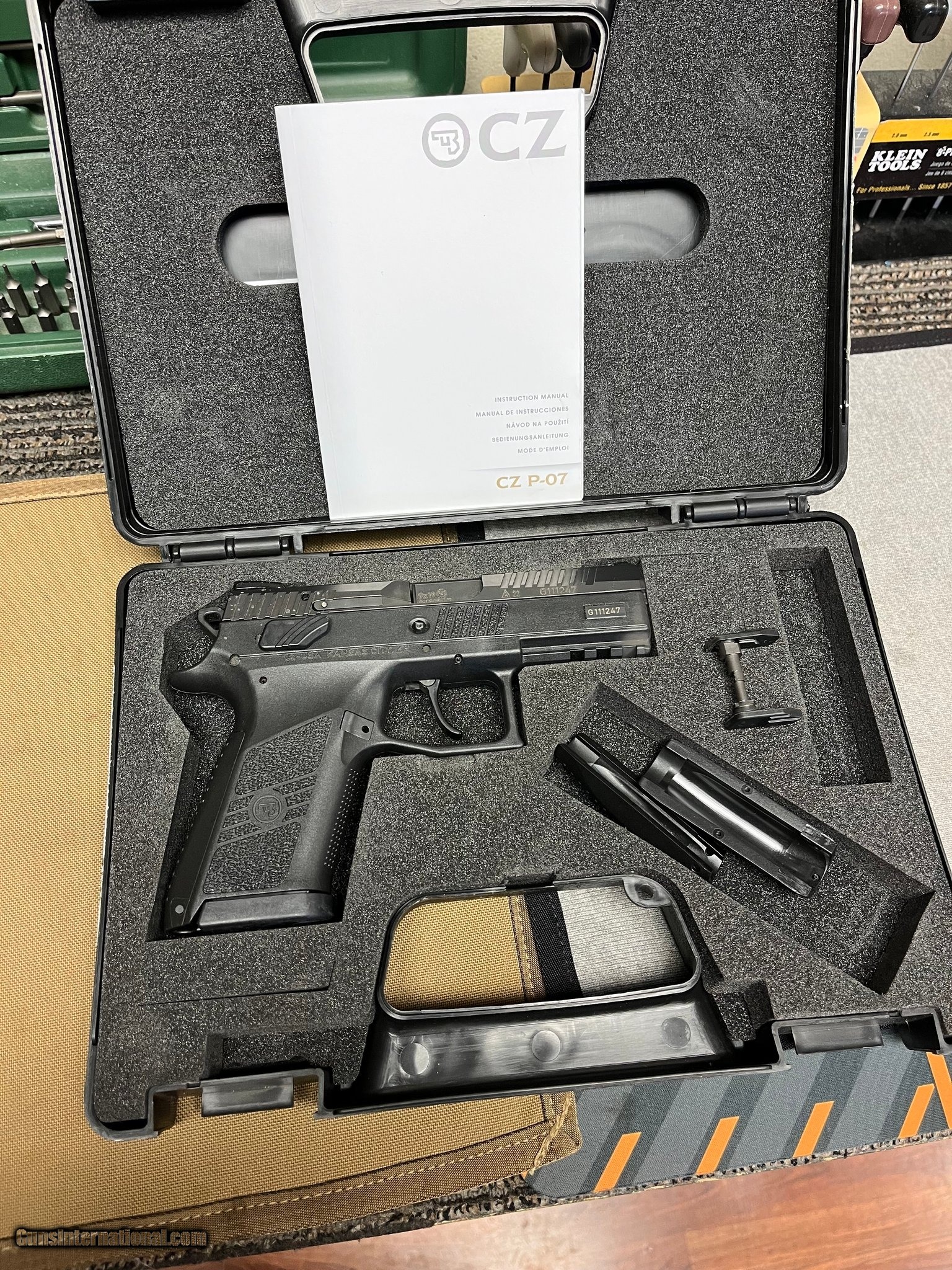 Description: Guns Listing ID: 479528 CZ P-07 9MM semi-auto. In factory box with everything except it only has one factory 15 round magazine. Great condition SOLD Manufacturer: CZ Model: P-07 Condition: Used - Non-Certified Barrels: 3.75 Gauge Info: 9MM LUGER (9x19 PARA) Finish: black |