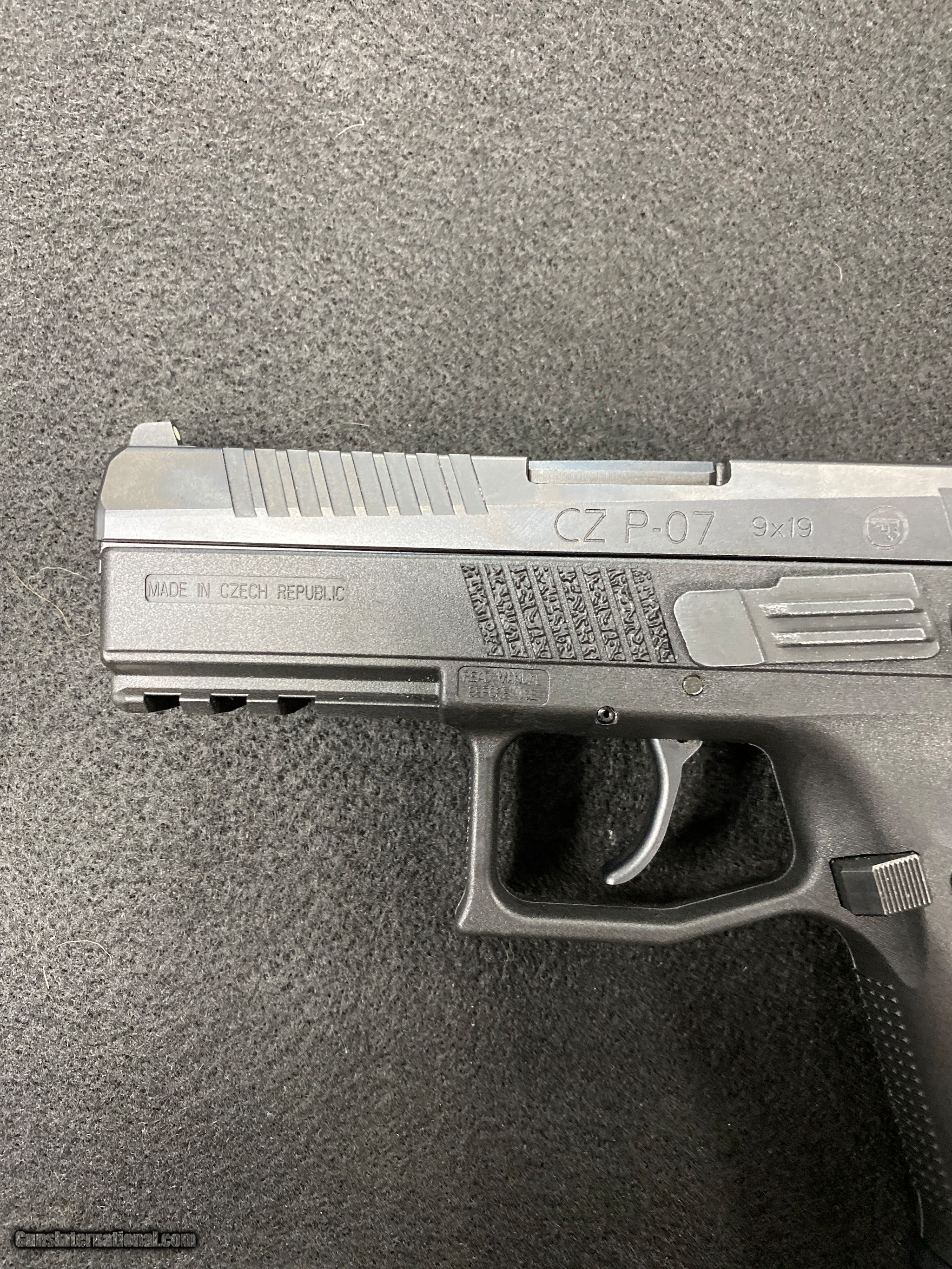 Description: Guns Listing ID: 747646 Up for sale is a preowned cz-usa p-07 9x19. This item comes as pictured with original case, 2 15 round magazines, grip extenders, and lock. Please view all pictures to verify items complete condition and the exact items included in sale. This item ships in one business day or less. Thank you for viewing our listings! SOLD Manufacturer: CZ Model: P-07 COMPACT Caliber Info: 9MM LUGER (9X19 PARA) Condition: Used - Non-Certified Barrels: 3.8 BARREL |