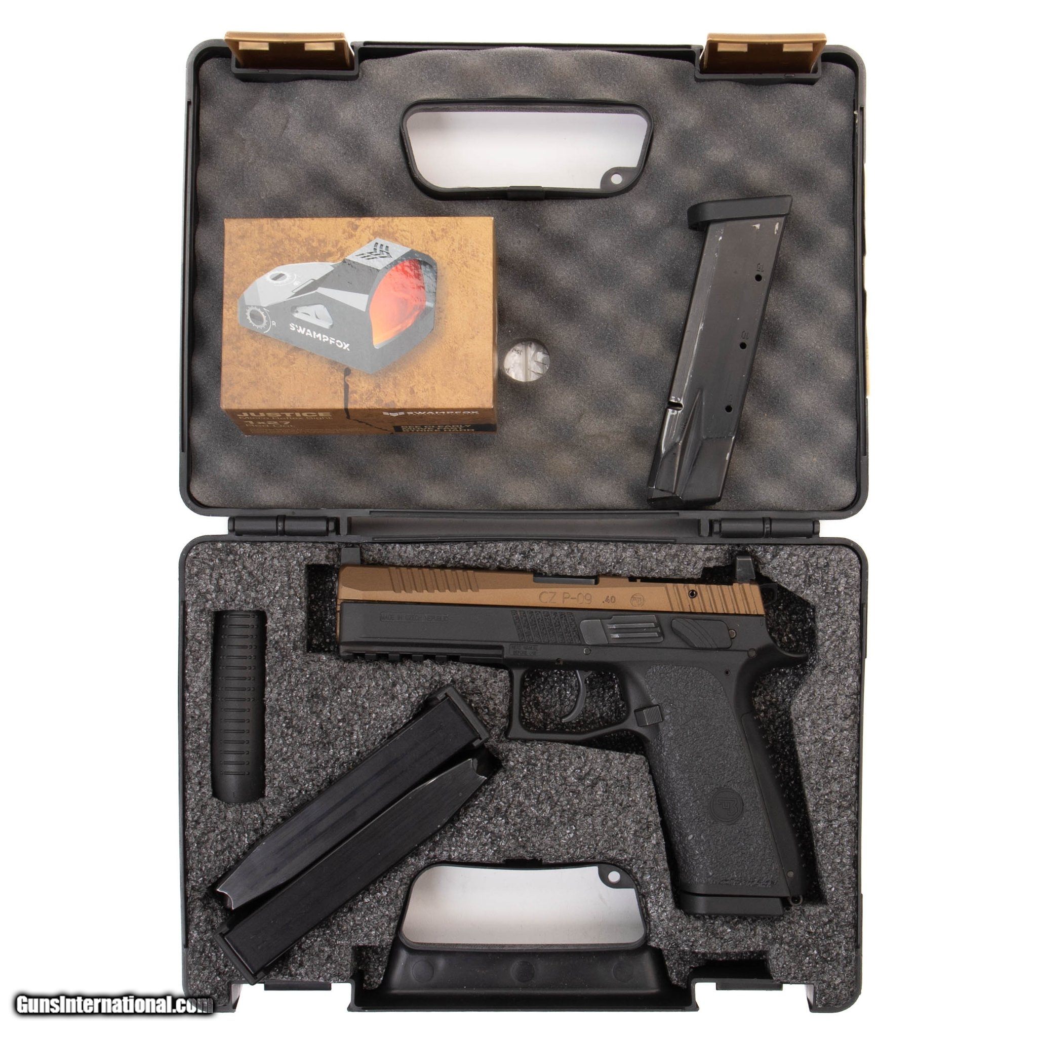 Description: Guns Listing ID: 482623 This CZ P-09 is in excellent condition! It features a Burnt Bronze Cerakoted slide and a SwampFox Justice red dot. Four 15-round magazines are included. Get the best bang for your buck when you get a Certified Used Firearm . When you see the Certified Used stamp on any of our firearms, you can be confident that you‚‚re getting exactly what you want – a gun only in very good to excellent condition and held to the highest quality standard. All Certified Used Guns come with a ‚‚no questions asked‚‚ return policy . PLUS, ALL CERTIFIED USED GUNS SHIP FR SOLD Manufacturer: CZ Model: P-09 Caliber Info: .40 S&W Condition: Used - Certified Barrels: 4.50 Action: SEMI AUTOMATIC Finish: two tone Weight: 1.8 |