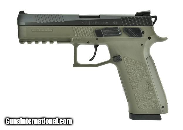Description: CZ P-09 9mm caliber pistol. Full size model with O.D. green frame and night sights. New.