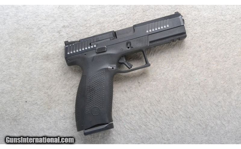 Description: This CZ Model P-10 F is a right hand semi-auto pistol in .45 ACP Cal. It has a 4.5 inch barrel with a front and rear serrated slide. A blade front sight and notch rear sight with 3 white sight dots. The grip is a deep dot textured black polymer with interchangeable backstrap. It has a lower accessory rail. .45 ACP SOLD Chambers: 13 round magazine. Metal Condition: Very Good. A little blue wear on edges. Bore Condition: Excellent. Barrels: 4.5 inch barrel with a front and rear serrated slide. Weight: 32 oz. Sights: Blade front. Notch rear. 3 white sight dots. Item Location: Richfield, WI |
