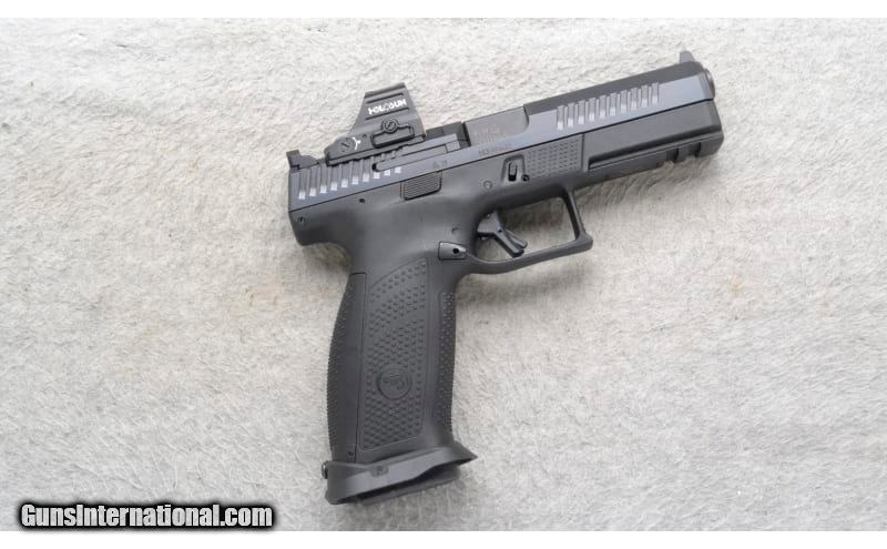 Description: This CZ Model P-10 F is a right hand semi-auto pistol in 9mm Cal. It has a 4.5 inch barrel with a front and rear serrated slide. A blade front sight and notch rear sight, both with white sight dots. The grip is a checkered black polymer. It has a lower accessory rail and flared magazine well. 9mm Parabellum SOLD Chambers: 19 round magazine. Metal Condition: Excellent. Bore Condition: Excellent. Barrels: 4.5 inch barrel with a front and rear serrated slide. Weight: 24 oz. Sights: Blade front. Notch rear. White sight dots. Holosun red dot sight. Item Location: Richfield, WI |
