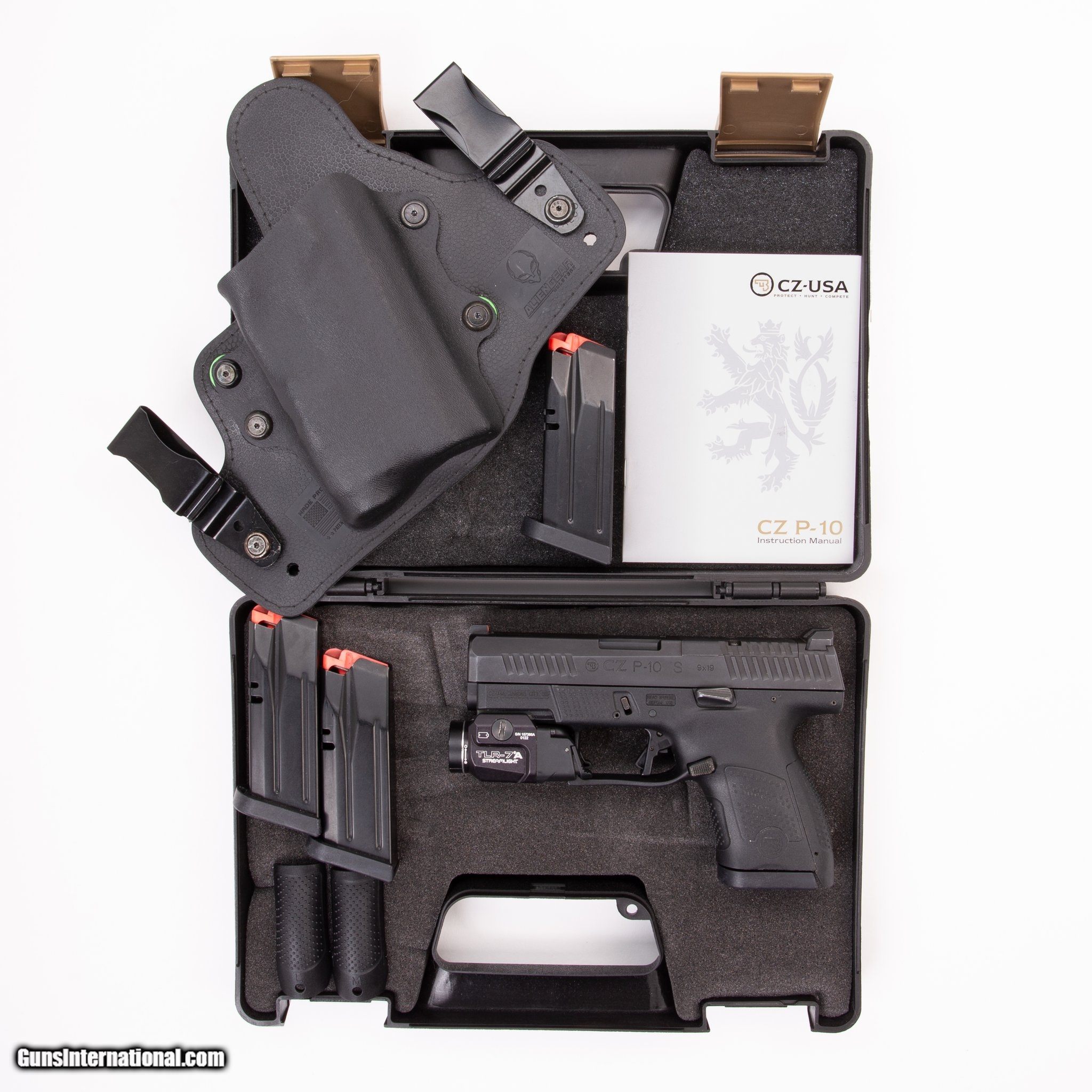 Description: Guns Listing ID: 459546 This optics ready CZ features four 12-round magazines, the original case, owner‚‚s manual, extra backstraps, an extended magazine release, an Alien Gear right hand IWB light bearing holster, a Streamlight TLR-7A light and night sights. Get the best bang for your buck when you get a Certified Used Firearm . When you see the Certified Used stamp on any of our firearms, you can be confident that you’re getting exactly what you want – a gun only in very good to excellent condition and held to the highest quality standard. All Certified Used Guns come with a ‘no questions asked’ return policy . PLUS, ALL CERTIFIED USED GUNS SHIP FREE SOLD Manufacturer: CZ Model: P-10 S Caliber Info: 9MM LUGER (9x19 PARA) Condition: Used - Certified Barrels: 3.50 Action: SEMI AUTOMATIC Finish: BLACK Weight: 1.6 |