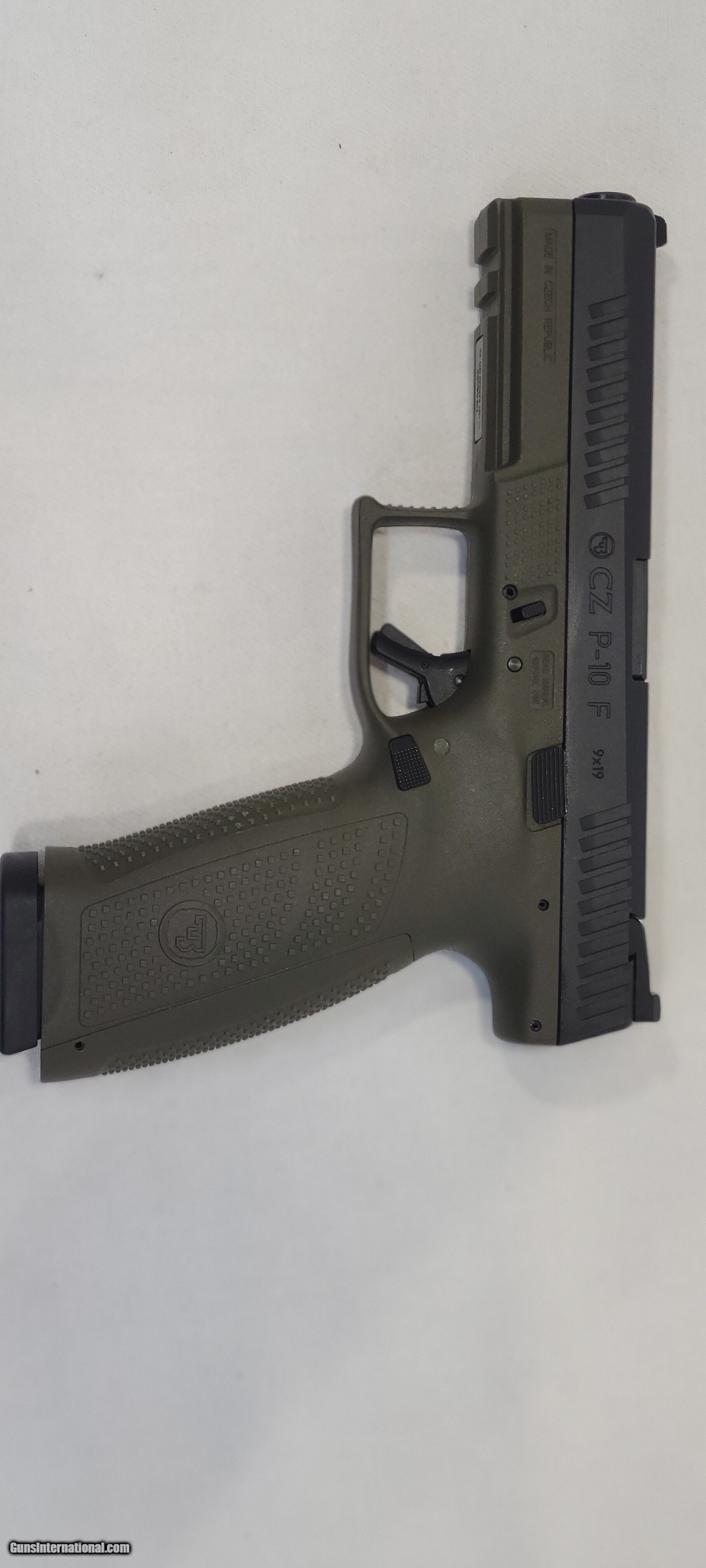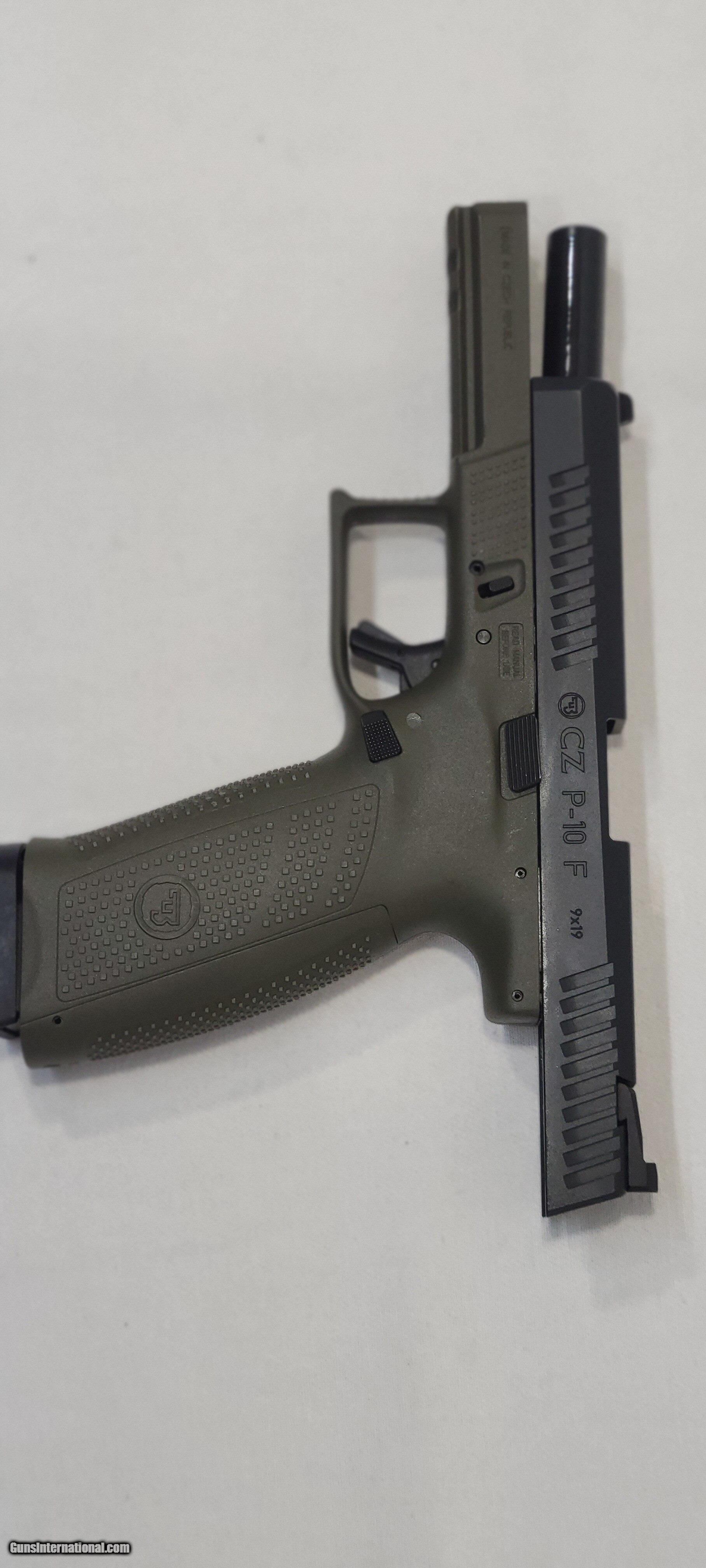 Description: Guns Listing ID: 705884 This is a CZ P-10 F in EXCELLENT condition. Comes with original box and one magazine. Brand-CZ Model-CZ P-10 Full Size Caliber-9mm Capacity-10 rd. Features 3 Interchangable Backstraps, Ambi Slide Release, Reversible Mag Catch Type Semi-Auto Pistol Action Double Action Only Finish-Black Polycoat Stock-Polymer Frame Sight FS:Tritium RS:Serrated Combat Safety Firing Pin Block/Trigger Barrel Length-4.5\" Weight-28.2 oz. Number Of Mags-1 Msrp-563 I#NMM RM SOLD Manufacturer: CZ Model: P-10 Caliber Info: 9MM LUGER (9X19 PARA) Condition: Used - Non-Certified Barrels: 4.5 BARREL Finish: BLACK |
