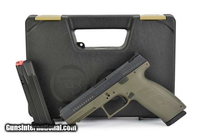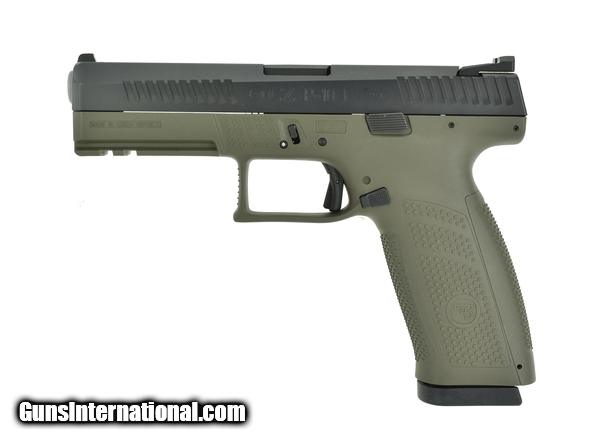 Description: CZ P-10F 9mm caliber pistol. Full size model with OD green frame. Excellent condition with box and magazine.