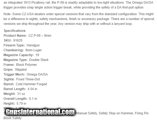 CZ-P09-9mm 19 round capacity