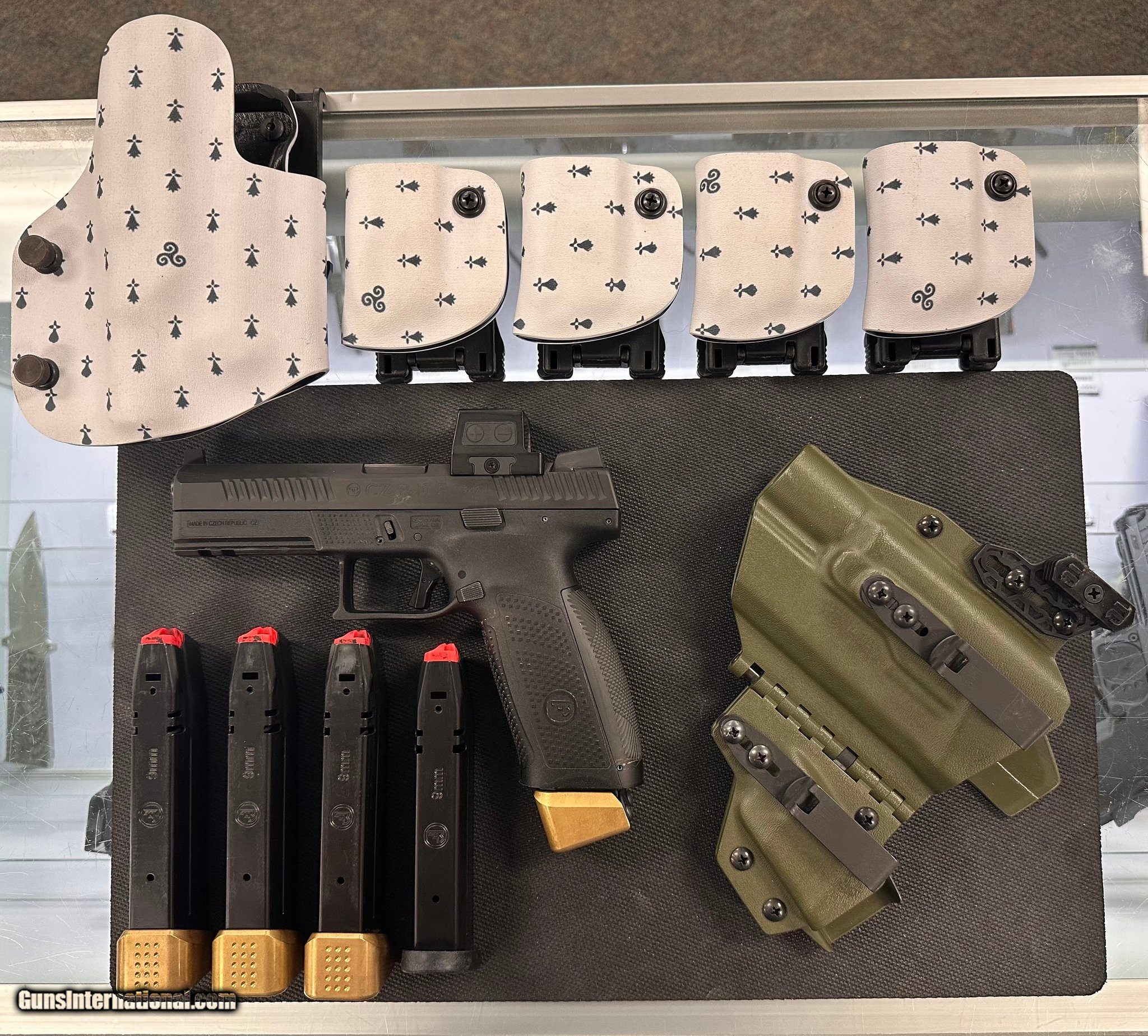 Description: Guns Listing ID: 569811 CZ P-10F • 5 Magazines • Holosun 509T (red) • TEIR 1 CONCEALED (IWB holster) • OWB Race holster on QLS setup • 4 mag pouches with Tek-lok belt mount. • no factory box SOLD Manufacturer: CZ Model: P10-F Caliber Info: 9MM LUGER (9x19 PARA) Condition: Used - Non-Certified Barrels: 4.5" BARREL Action: SEMI AUTOMATIC Finish: black |