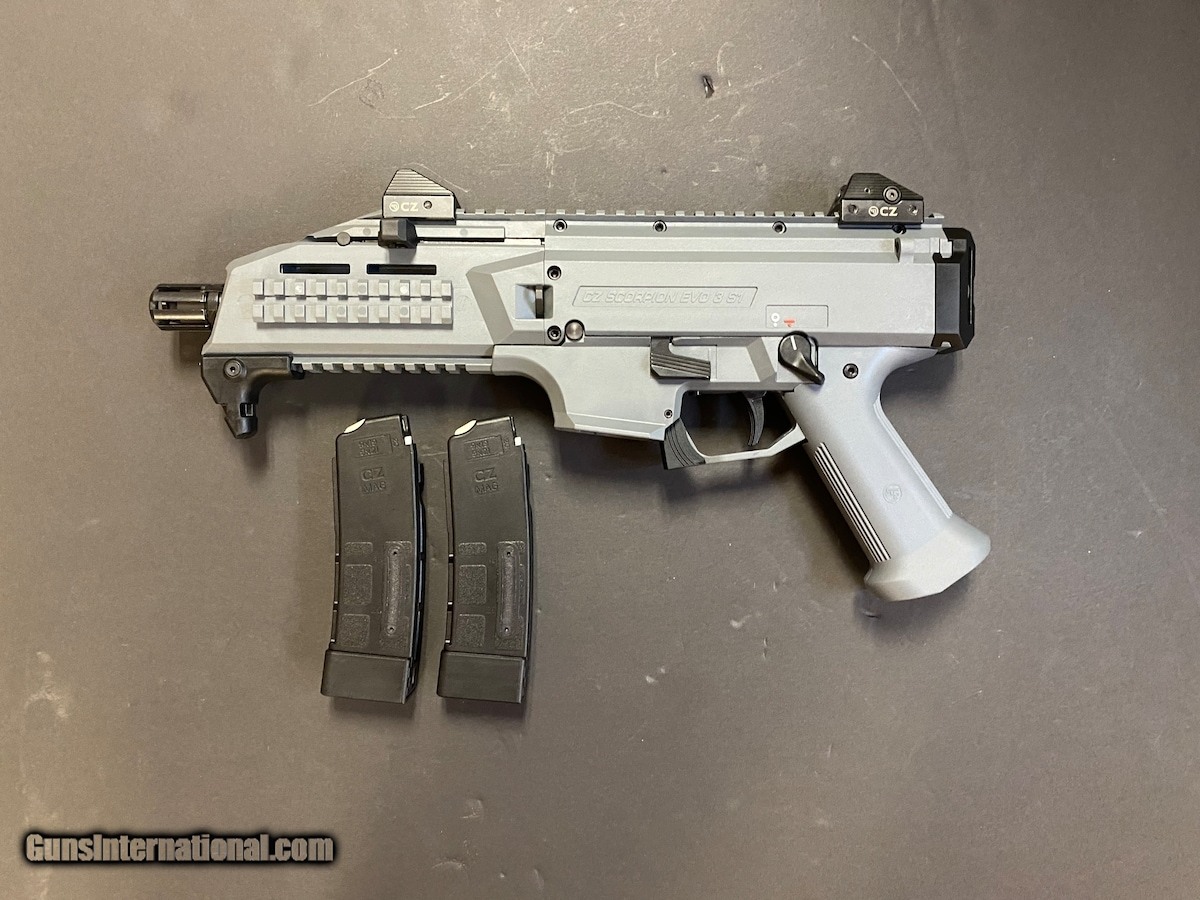 Description: Guns Listing ID: 479067 Scorpion Evo in grey matte finish. Includes 2 20-round magazines and a cleaning kit. Comes in original box. SOLD Manufacturer: CZ Model: SCORPION EVO 3 S1 Caliber Info: 9MM LUGER Condition: Used - Non-Certified Barrels: 7.7" barrel |