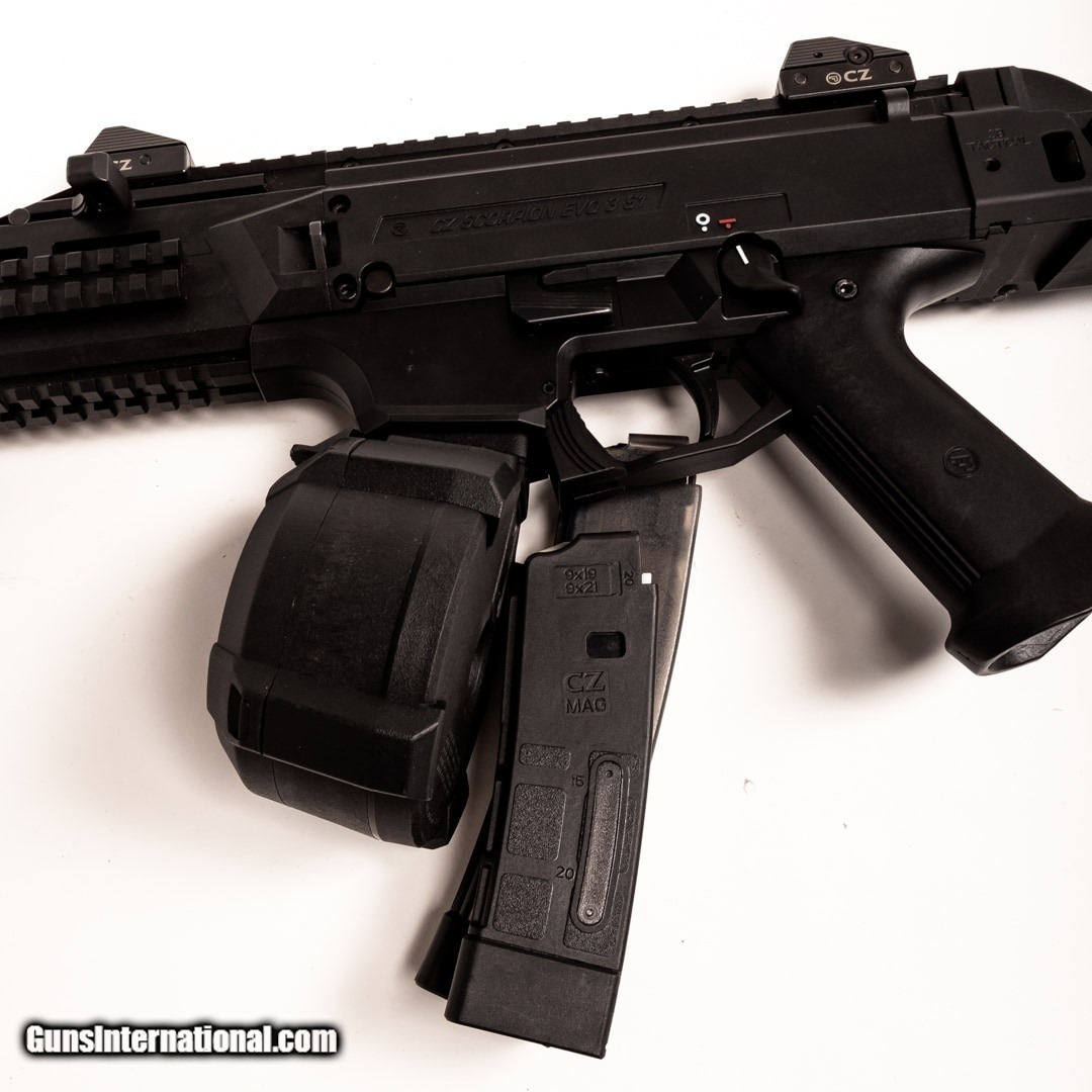 Description: Guns Listing ID: 553831 The Scorpion Evo 3 S1 makes an excellent self-defense sidearm and truck gun. They‚‚re fun to shoot and incredibly rugged due to their high-grade polymer exterior. This handgun features one 50-round drum, one 30-round magazine, one 20-round magazine, a brace, and the orignal manual. SOLD Manufacturer: CZ Model: SCORPION EVO 3 S1 Caliber Info: 9MM LUGER (9X19 PARA) Condition: Used - Certified Barrels: 7.75 BARREL Finish: BLACK |