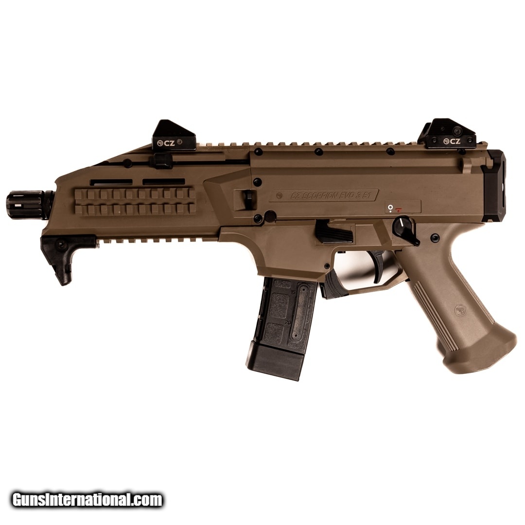 Description: Guns Listing ID: 729786 This CZ Scorpion EVO 3 S1 is a military-grade firearm recently made available to the public and well-suited for personal protection and home defense. Chambered in 9mm, the Scorpion EVO 3 S1 has a fiber-reinforced polymer frame and a Picatinny rail suitable for mounting optics. This blowback-operated pistol is perfectly suitable for the attachment of an SB Tactical arm brace. This Scorpion EVO 3 S1 includes a CZ backpack, two 20-round magazines, two 30-round magazines, and one 40-round magazine. Get the best bang for your buck when you get a Certified Used Firearm . When you see the Certified Used stamp on any of our firearms, you can be confident that you’re getting exactly what you want – a gun only in very good to excellent condition and held to the highest quality standard. All Certified Used Guns come with a ‘no questions asked’ return policy . PLUS, ALL CERTIFIED USED GUNS SHIP FREE! SOLD Manufacturer: CZ Model: SCORPION EVO 3 S1 Caliber Info: 9MM LUGER (9X19 PARA) Condition: Used - Certified Barrels: 7.7 barrel Finish: FDE |