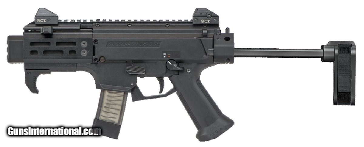 Description: Guns Listing ID: 534697 This CZ Scorpion sub-gun is a blowback-operated semi-auto in 9mm with cold hammer-forged barrel. Its muzzle features 1/2x28 threads hidden underneath the factory flash hider, meaning users can fit either 1/2x28 or 18x1 accessories to the muzzle. Equipped with a low-profile sights, its rear sight has four different aperture sizes for everything from close quarters to way out there. The sights ride on an 11\" Picatinny rail perfect for mounting optics. It has a polymer frame with a QD sling swivel pocket integrated into the rear sling attachment point. Simple and reliable, the Scorpion not only has ambidextrous controls, its non-reciprocating charging handle is swappable and trigger reach is adjustable. This S2 model has a 4.12\" barrel, HB Industries short handguard, NoOsprey faux suppressor, telescoping SB Tactical arm brace, low-profile iron sights, and ambidextrous controls. SOLD Manufacturer: CZ Model: SCORPION EVO 3 S2 MICRO AR PISTOL Caliber Info: 9MM Condition: new Barrels: 4.1 BARREL |