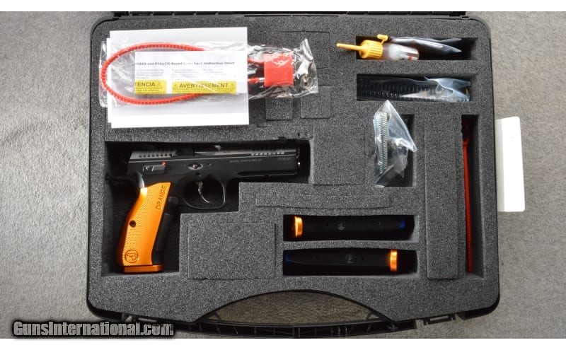 Description: Turning the Shadow 2 up a notch, the biggest addition on the Orange is a barrel bushing that increases slide-to-barrel fit, resulting in tighter groups. Not as obvious is a factory-tuned trigger with short reset and the hand-fitting of the slide and frame. With many of the same great features that have made the Shadow 2 dominant in USPSA Production Division, the Orange wears a set of signature grips, mag bases and mag release button to set it apart from the standard pistols. The Shadow 2's swappable mag release has an adjustable, extended button with three settings to allow shooters to set it in the spot most comfortable for them. A hardy nitride finish coats the entire pistol, while the frame gets a layer of our hardy black polycoat. Thin aluminum grips have healthy checkering to match the fine front and backstrap checkering of the pistol itself. Sitting atop the slide are a set of target sights — fiber optic on front and a serrated, black HAJO rear (click adjustable for elevation, drift adjustable for windage). 9mm Luger SOLD Metal Condition: Like new. Bore Condition: New. Triggers: DA/SA. Weight: 2.75 lbs Item Location: Owatonna, MN |