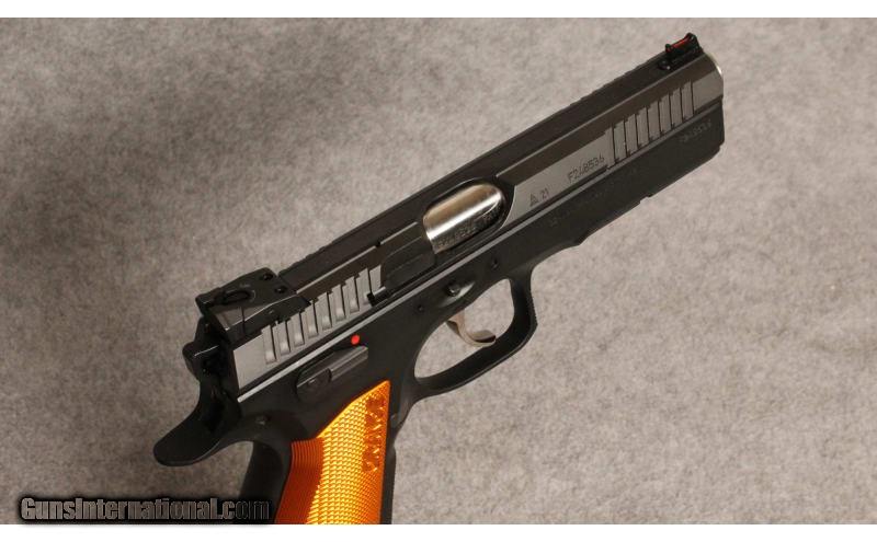 Description: This CZ Shadow 2 is a semi-automatic pistol that is chambered in 9mm Luger. Turning the Shadow 2 up a notch, this variant adds a barrel bushing that increases slide-to-barrel fit, resulting in tighter groups. As well as a factory-tuned trigger with short reset and the hand-fitting of the slide and frame. With many of the same great features that have made the Shadow 2 dominant in USPSA Production Division, the Orange variant wears a set of signature grips, mag bases and an extended mag release button to set it apart from the standard pistol. This particular pistol is in overall fantastic condition and comes with an extra set of grips, making it a great addition for any shooter seeking an accurate reliable pistol. 9mm Luger SOLD Metal Condition: Excellent Bore Condition: Bright Barrels: 5 Weight: 3lbs Item Location: Tualatin, OR |