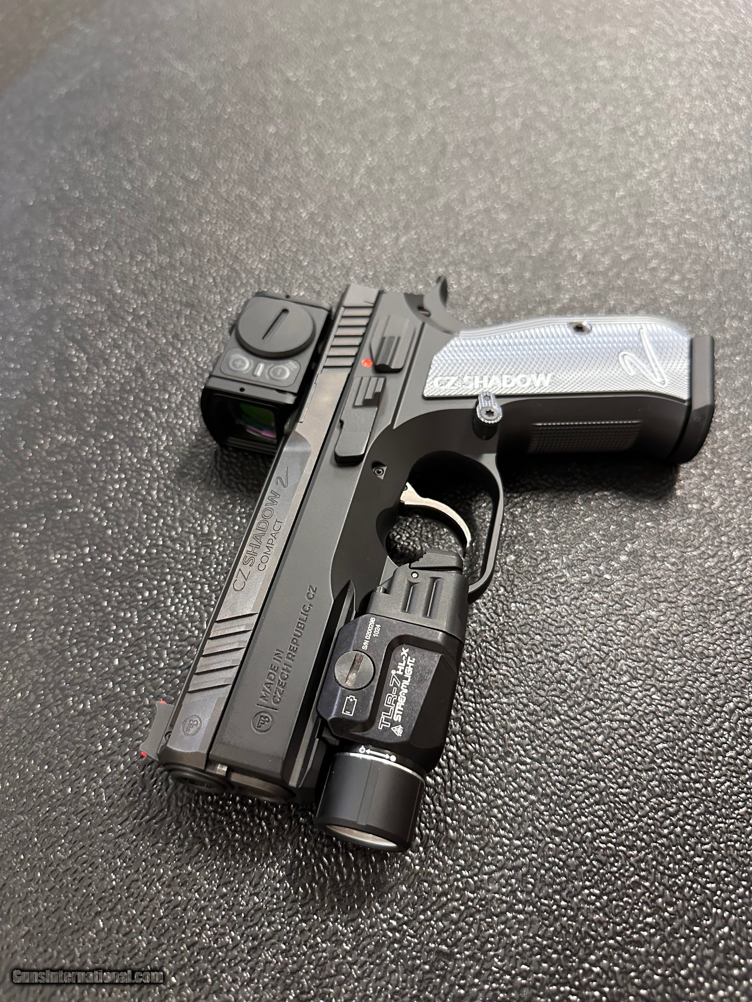 Description: Guns Listing ID: 536031 • CZ Shadow 2 Compact • Aimpoint Acro P-2 3.25MOA • Streamlight TLR-7HL-X • 2 Magazines • T-REX Arms IWB Holster • original box / gunlock / manual SOLD Manufacturer: CZ Model: SHADOW 2 COMPACT Caliber Info: 9MM LUGER (9x19 PARA) Condition: Used - Non-Certified Barrels: 3.75 BARREL Action: SEMI AUTOMATIC Finish: black & silver |
