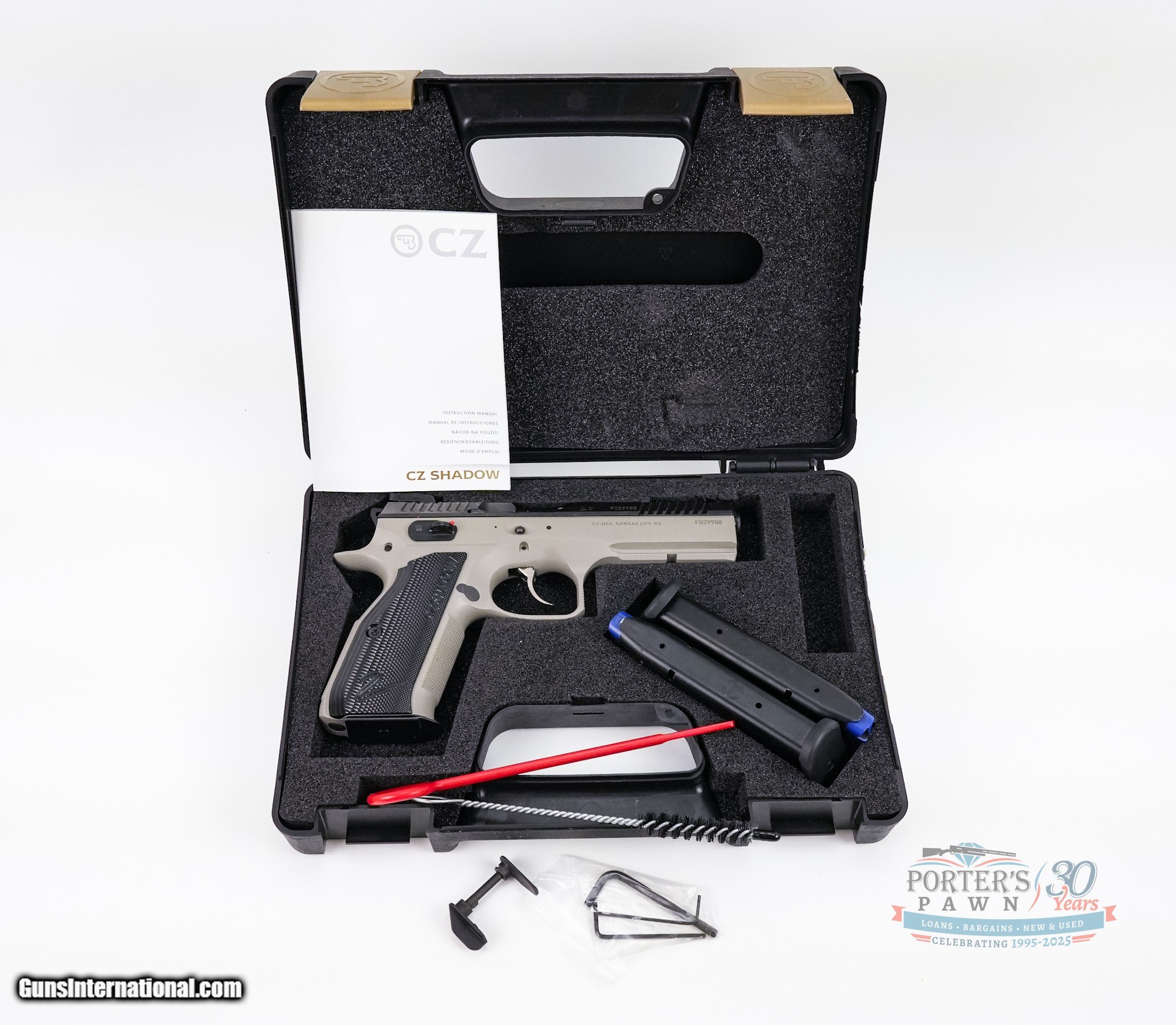 Handgun Caliber: 9x19mm Parabellum (9mm Luger, 9x19mm NATO) Manufacturer: CZ Model: Shadow 2 Serial Number: f029988 Barrel Length: 4.89 Bore Info: Factory New Chambers: Factory New Condition: Factory New Metal Condition: Factory New Wood Condition: No Wood; Does Not Apply Bore Condition: Factory New Barrels: 1 Action: Semi-Auto DA/SA Weight: 46.5 oz Sights: Fiber Optic Front, Adjustable Rear Extras: Three (3) 17-Round Magazines, Factory Hard Case, Barrel Brush, Adjustment Tools, Owner’s Manual Case: Factory Hard Case Grips: Checkered Aluminum Price: $1,275.00 Shipping: $35.00 Buy Now Pay with