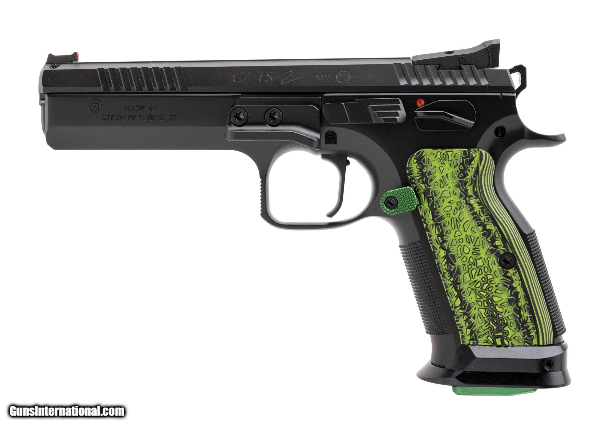 Description: Guns Listing ID: 535284 SN: F438768. Modern production, 9mm with a 5.23\" barrel. Bore is excellent. Full size steel frame single-action competition pistol. Matte finish and racing green aluminum grips. Includes case, additional grips and 3 20-rd magazines. Overall condition is excellent. (PR73565) SOLD Manufacturer: CZ Model: TS-2 Caliber Info: 9MM LUGER (9x19 PARA) Condition: Used - Non-Certified Barrels: 5.23 BARREL Action: SEMI AUTOMATIC Finish: black matte |