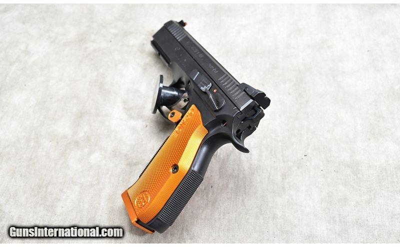 Description: Featuring adjustable sights, 20-round magazines, ambidextrous safety and oversize trigger guard. 9mm Luger SOLD Chambers: 20-round magazines. Metal Condition: As new in the box. Wood Condition: As new in the box. Bore Condition: As new in the box. Barrels: 5-1/4 inch barrel. Triggers: Factory single action trigger. Butt Pad: """Checkered"" teal green alloy grips. Weight: 49 oz. Sights: Fiberoptic and adjustable notch sights. Item Location: Rogers |