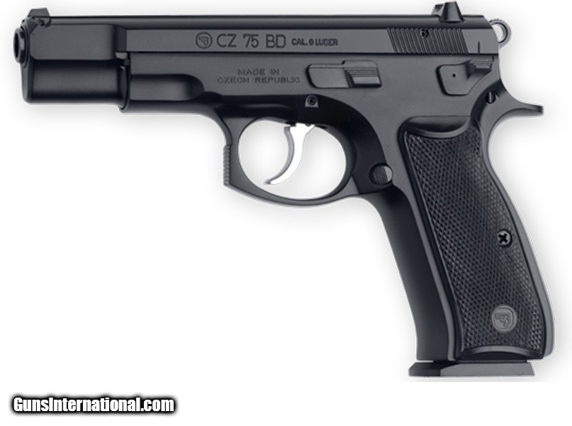 Description: BRAND NEW IN THE BOX AND READY TO SHIP! BUY IT NOW!! Manufacturer: CZ-USA Model: CZ 75 BD SKU: 91130 Caliber: 9mm Luger Capacity: 16 Round Double Stack Magazine Barrel Length: 4.6" Cold Hammer Forged Frame: Carbon Steel with Black Polycoat Finish Grips: Checkered Plastic Overall Length: 8.1" Trigger Mech: DA/SA Sights: Fixed Three-Dot Weight: 35.3 oz Safety: Decocking Lever, Safety Stop on Hammer, Firing Pin Block Safety This model is a decocker version of the basic CZ 75 B model. The decocking lever mounted on the left side allows the hammer to be easily lowered on a loaded chamber for a safe, ‘hammer down’ carry. CZ 75 B is used by more Governments, Militaries, Police and Security agencies than any other pistol in the world. The CZ 75 is quite possibly the perfect pistol.