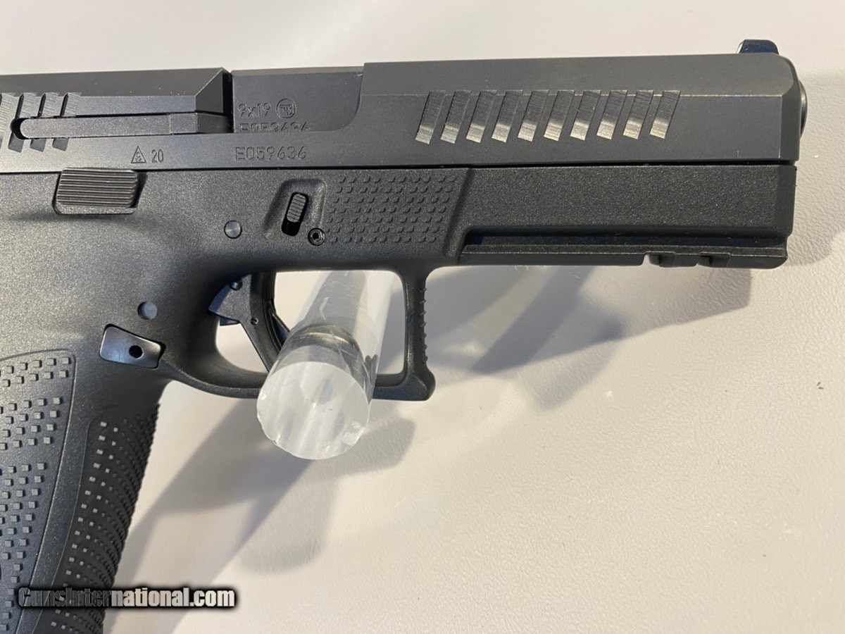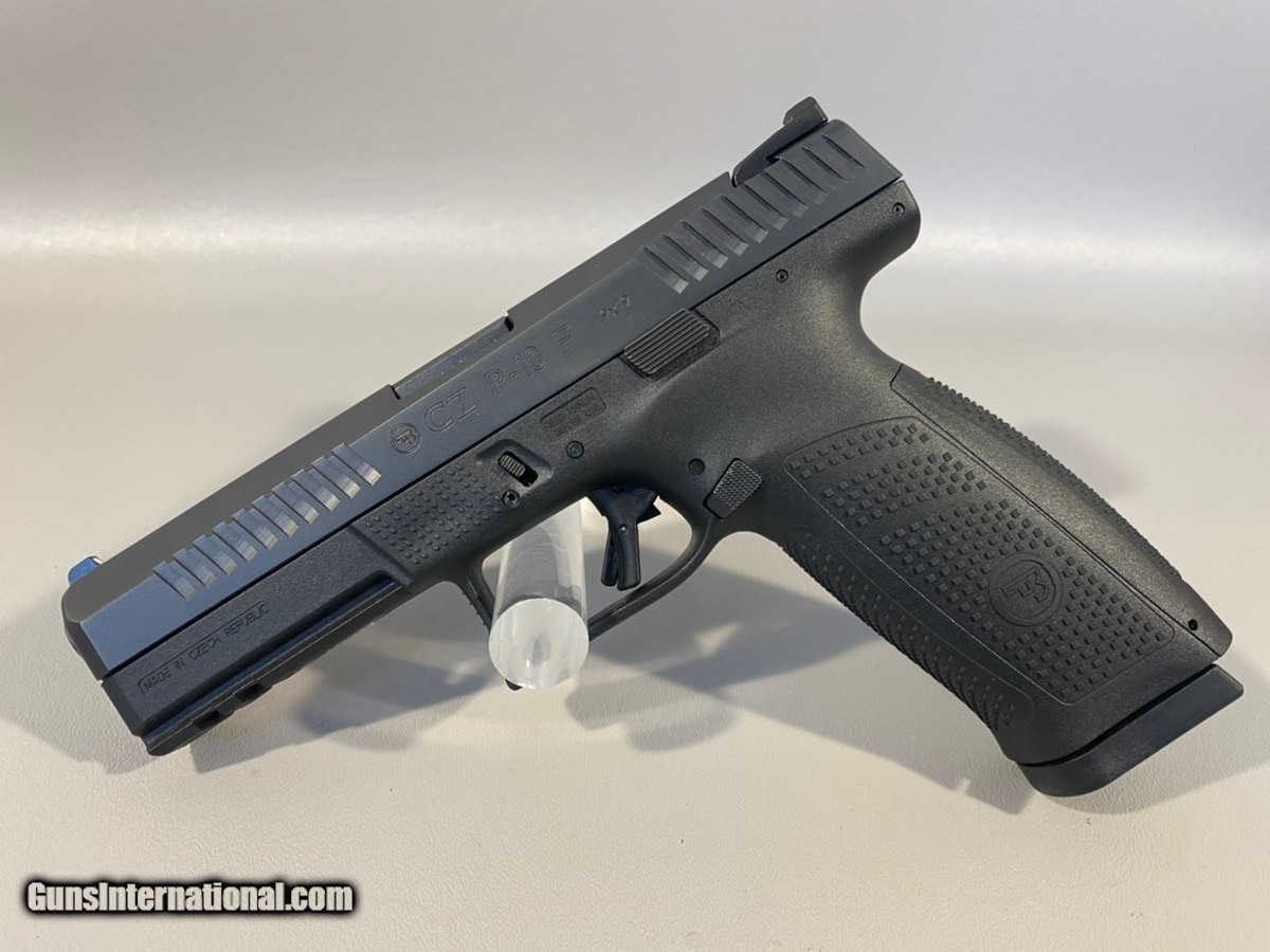 Description: Guns Listing ID: 578419 NEW PISTOL: CZ-USA MODEL P-10 F (01540), INCLUDES ORIGINAL BOX AND PAPERS, 4.5\" BARREL, 9MM, SEMI-AUTOMATIC, TWO 10 ROUND MAGS. *CA COMPLIANT* DEALER DESCRIPTION/SPECS: The CZ P10 F Full Size is much more than just another striker fired pistol, it‚‚s CZ take that will shoot as good as it looks. The ergonomics of the P-10 F is quite apparent after just one time picking it up. You will notice it will fit just right in your hand and it avoids the feeling of being a brick-in-the-hand which other striker fired guns suffer from. Additionally the trigger breaks at a clean 4.5lb to 5 lb trigger pull and rebounds with a short positive reset allowing for well placed follow up shots. The fiber reinforced polymer frame is extremely durable and sturdy while the matte black finish ensures it will match your tactical gear. Specifications and Features: CZ P-10 F Full Size Semi Auto Pistol 01540 9mm Luger 4.5\" Cold Hammer Forged Barrel 10 Rounds 3 Dot Sights Striker Fired Firing Pin Block Safety Trigger Safety Fiber Reinforced Polymer Frame Accessory Rail Aggressive Slide Cocking Serrations Black Slide Black Finish Fram SOLD Manufacturer: CZ Model: CZ P-10 F Caliber Info: 9MM LUGER (9X19 PARA) Condition: Used - Non-Certified Barrels: 4.5 BARREL Finish: BLUE |