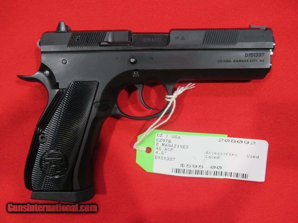 Description: CZ/USA CZ97B 45acp 4.5" (USED)-- Factory original and virtually new. This gun is mint with case and extras. SOLD |