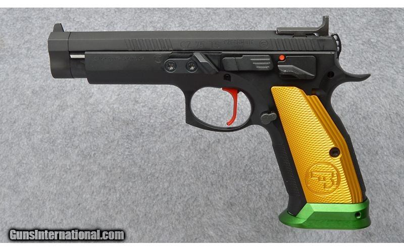 Description: The CZ 75 Czechmate in cal. 9 mm Luger is the latest addition to the Tactical Sports family of pistols designed especially for competition shooting according to the rules of IPSC, Open Division. Offering precision of fit and finish, the Parrot has an extremely low bore axis and shoots very flat. Factory tuned single-action trigger pull is very clean and light. Steel frame, ergonomic aluminum grip panels and magwell. Includes case, (1) 26 rd. mag, (3) 20 round mags, Instruction manual, service tools, extra recoil spring, 4 port compensator, oil, purple cocking lever, extra slide stop and pins and C-More red dot sight with side mount. As New in Factory Box. 9mm Luger SOLD Metal Condition: Black Finish Bore Condition: Like New Barrels: 5.23" Cold hammer forged threaded barrel Triggers: Single Action Auto Weight: 48 oz. Sights: "Dovetailed Rear Sight, Post Front, C-More Red Dot Sight with Mount Item Location: Buda, TX |