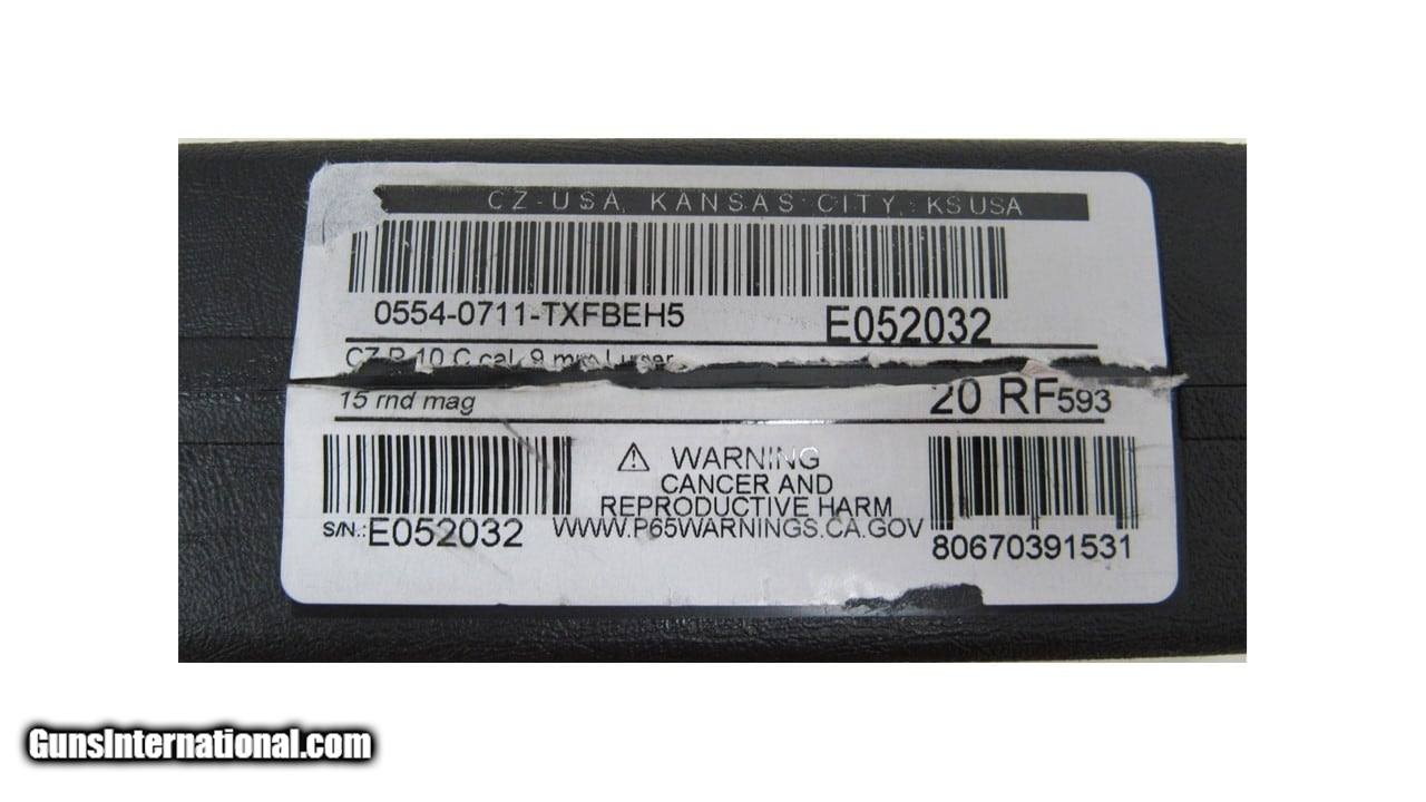 Description: Guns Listing ID: 525079 CZ-USA P-10C 9MM 15 ROUND MAG 4\" BARREL STRIKER-FIRED ACTION INCLUDES FACTORY CASE AND OWNERS MANUAL W/ 2 INTERCHANGEABLE BACKSTRAPS + 1 ADDITIONAL MAGAZINE AMBIDEXTROUS SLIDE RELEASE LEVER SOLD Manufacturer: CZ-USA Model: P-10C Caliber Info: 9MM LUGER (9X19 PARA) Condition: Used - Non-Certified Barrels: 4 BARREL Finish: BLACK |