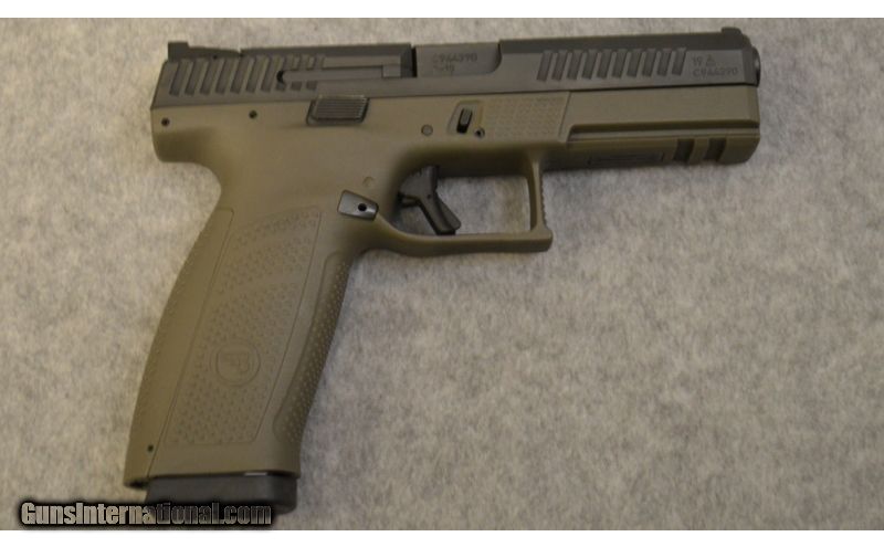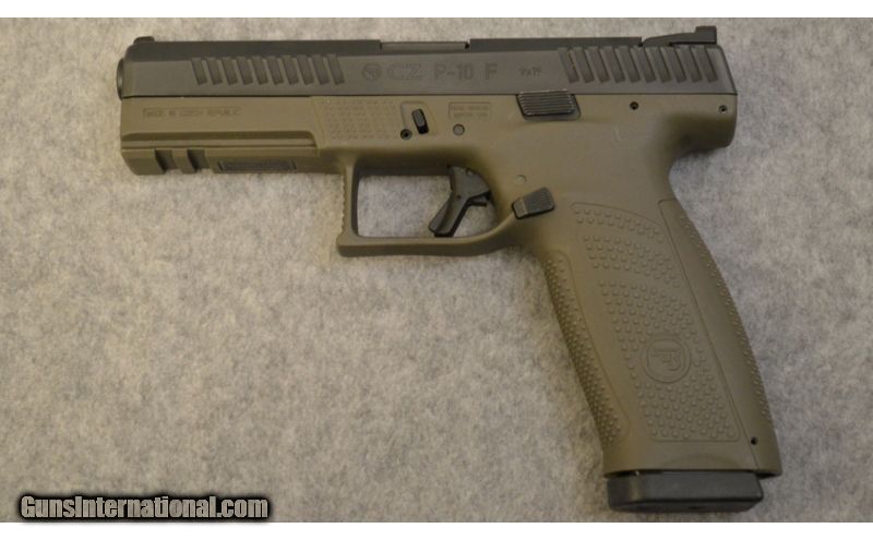Description: This is a semi-automatic CZ-USA P-10F chambered in 9 mm. It has a 4" blued barrel with a white bead front sight. It has a green composite pistol grip with checkering which is in excellent condition. The metal is also in excellent condition, with minimal markings. The bore is bright and shiny. This pistol comes with the factory case and two magazines. SOLD Caliber Info: 9 mm. Chambers: Semi-automatic. Metal Condition: Excellent, with minimal markings. Bore Condition: Bright and shiny. Barrels: 4" Blued barrel. Triggers: Single curved trigger. Stock: Green composite pistol grip with checkering. Weight: 28 oz. Sights: White bead front sight. Extras: Factory case and 2 magazines. Item Location: Huntsville, AL |