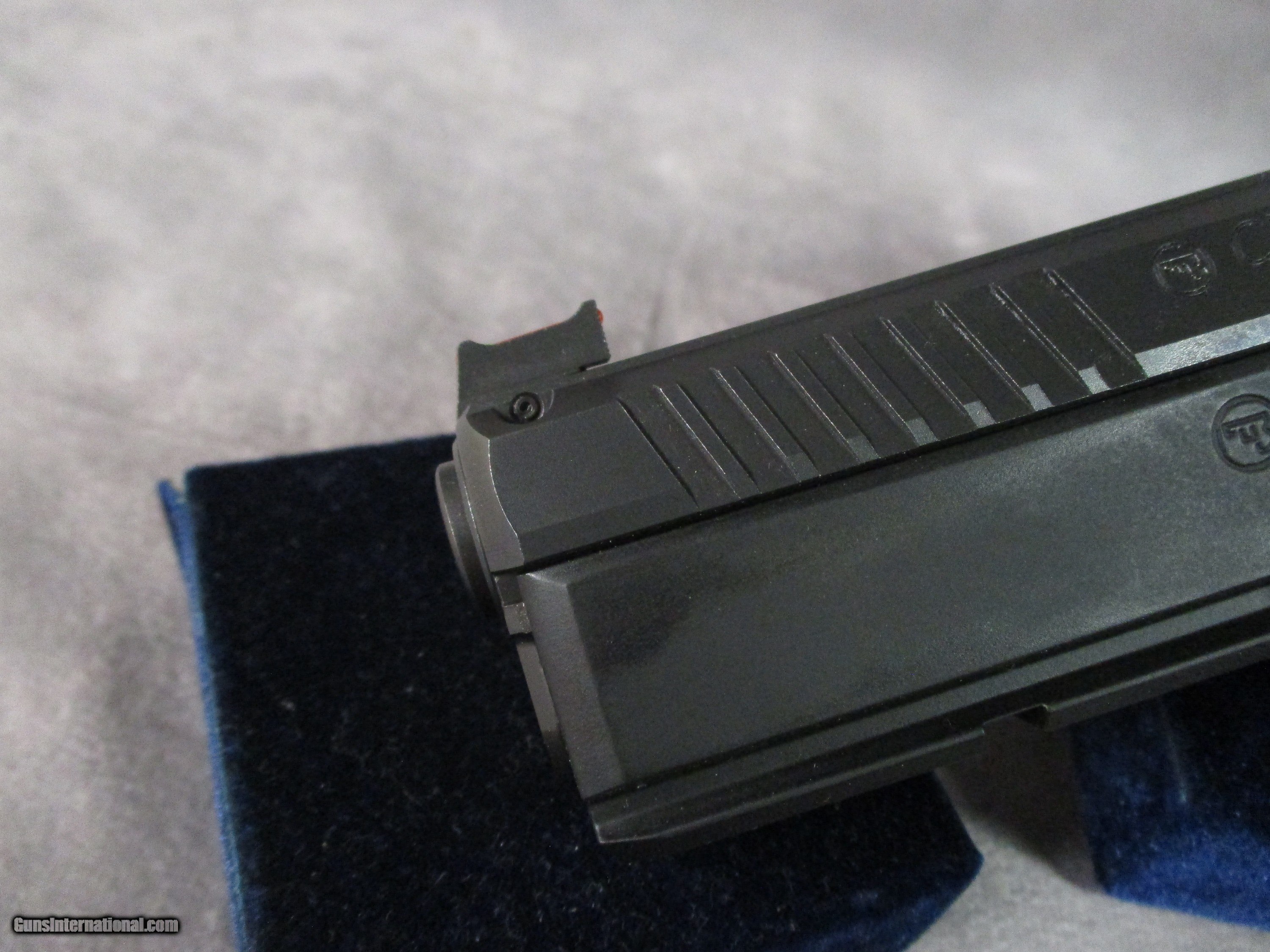 Description: The Shadow 2 pistol was introduced in 2018 as a development of the original CZ Shadow, produced in various sub-models from 2011 – 2017. Both are developments of the world-famous CZ 75 pistol. Like the 75, the Shadow 2 sports excellent ergonomics. The pistol simply feels “right” in the hand, as if it does not belong anywhere else. This feature was one of the reasons why the original CZ 75 has seen use in pistol competitions. Its popularity there was so great that CZ decided to produce a competition version of the CZ 75, resulting in the Shadow line of competition pistols. The Shadow 2 is often seen in use by USPSA Production Division competitors. With the rise in popularity of red dot sights for pistol competition shooting, it was only a matter of time before a Shadow 2 with the ability to mount an optic appeared. The Shadow 2 O.R. (Optic Ready) has a slightly modified slide profile compared to the basic Shadow 2 in order to accommodate an optic. Optic plates are sold separately. The Shadow 2 O.R. also features a swappable magazine release with an adjustable, extended button with 3 settings permitting the shooter to set it to the spot that is most comfortable for them. Improved trigger components give the Shadow 2 O.R. a smooth double-action and crisp single-action pulls, while significantly reducing the trigger reset distance. For superb resistance to the elements, the Shadow 2 is initially given a highly resistant nitride coating on both the slide and frame. Then, the frame is given an additional layer of CZ’s black Polycoat finish. Sights consist of a fully-adjustable HAJO rear and a fiber optic front. The Shadow 2 is a fairly heavy pistol at 46.5 oz. unloaded. Bear in mind, the purpose of this is to significantly reduce felt recoil with the 9mm Parabellum cartridge. This is another reason why the Shadow 2 is so popular for pistol competition use. Just in case, the Shadow 2 features a rail on the dust cover for the mounting of a flashlight or laser. This new-in-box pistol comes with its box, manual, and no less than three 19-round magazines. SOLD Handgun Caliber: 9x19mm Parabellum (9mm Luger, 9x19mm NATO) Manufacturer: CZ-USA Model: Shadow 2 O.R. Serial Number: H097961 Bore: Rifled, Conventional lands and grooves, 6 grooves, 1:10 inches (1 in 254 mm) RH twist Ejectors: Auto-ejection Condition: New in Box Barrels: Cold hammer forged Barrel Type: Tilting Action: Browning short recoil action, tilting barrel, locked breech, DA/SA Triggers: DA/SA, matte silver finish Stock: Thin blue Aluminum grips Fore End: Picatinny-type rail Finish: Nitride (slide and frame), Black Polycoat (on frame over the nitride finish) Weight: 46.5 oz. Sights: HAJO rear, fiber optic front, sight radius 6.65 inches (168.91 mm) Case: CZ Hard Case |