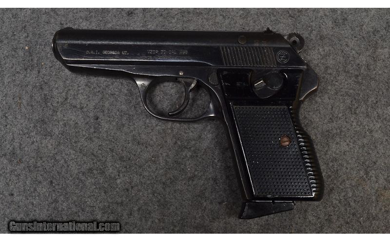 Description: 7.65mm SOLD Chambers: Semi-automatic pistol. Metal Condition: Fair. Signs or wear and use. Wood Condition: Fair. Signs of wear and use. Bore Condition: Good. Barrels: 4" blued steel barrel. Triggers: Single metal trigger. Stock Dimensions: Black checkered synthetic grips. Weight: 26 oz. Sights: Factory iron sights. Item Location: Wichita, KS |