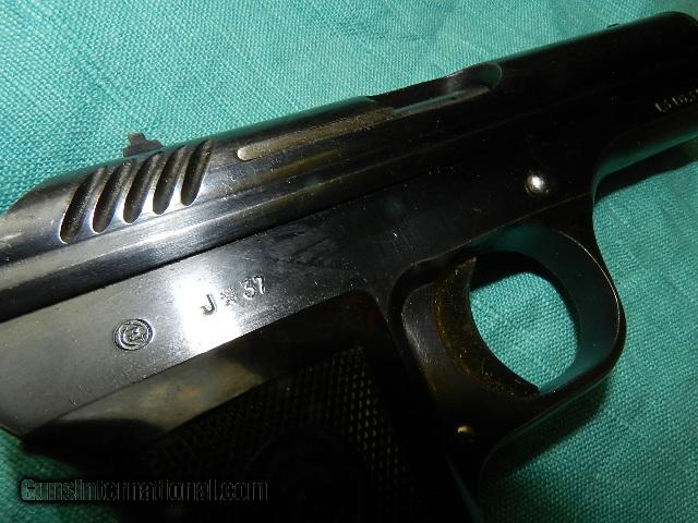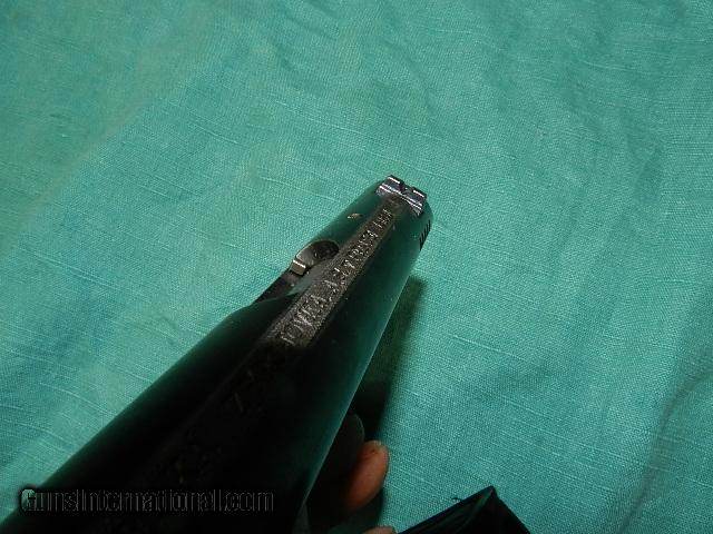 Description: EXCELLENT BRIGHT BORE ON THIS MODEL 24 in .380. a pre- occupation made pistol with about 85% original blue,with fading and wear to high edges.A smooth, good crisp action. Straw color remaining on the trigger. The walnut wrap around grips very good. Has one model 24 marked mag .Right side of frame states: J (proof) 37. Matching numbers and a military acceptance stamp of 1937! a very strong .380 cal. carry gun. We don’t have asite .I prefer money orders or a check. Item ships when funds come in. If you can only pay with a card let me know. I hope you like my wide selection of unusual guns, knives and gun parts. I try to keep the prices affordable, which means I make less money than most dealers. I consistently have the best selection of older guns If you BUY IT NOW you must still contact us for details buy it now doesn't end the sale, it just sends an email telling us you want to buy this gun. A phone call won’t secure a sale! Not home many times, the first buyer by email buys the gun !Thissite doesnot close down a sale when you do a BUY IT NOW like Ebay!I can get six buy it nows in an hour, first buyer to email gets the guns, others are in second place! Best to send another email . Sometimes not home to get calls. Some guns are required shipment to a gun dealer near you for a transfer to you when it arrives. With the widest selection of older guns at great prices, We don’t have a store, and sell on the internet only. SOLD Curio/Relic: Yes |