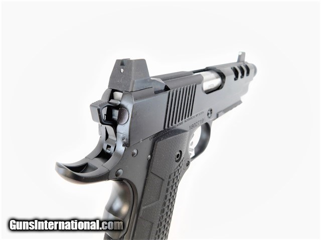 Description: This pistol is being sold as a factory blem or second. There are extremely minor cosmetic imperfections that you will not even know they are there unless you were told where to look. These pistols still carry a full factory warranty, however the warranty does not included any sort of cosmetic issues. The pictures are of the exact firearm you are on and will receive! With suppressors becoming more and more mainstream, the Discretion’s match-grade stainless barrel is extended and threaded to make it a ready host. Its aggressively-ported slide, serrated trigger and competition-inspired hammer give it a look all of its own, making it stand out in our line of 1911s. High tritium sights allow for sighting over the top of most pistol suppressors, with a rear designed so that the slide can be racked on a belt if using the pistol one-handed. Manufacturer: CZ-USA / Dan Wesson Model: Discretion Commander Caliber: 9mm Luger / Para. Capacity: (2) 10 Round Magazines Overall Length: 8.8" Barrel Length: 5" Width: 1.5" Weight: 41.7 oz Frame & Slide Material: Forged Stainless Steel Finish: Black Duty Finish Grips: Custom G10 Action: Single-Action Only Sights: High Suppressor Height, 3-Dot Night Sights Safety: Manual Thumb Safety & Grip Safety KNOW YOUR LOCAL AND STATE LAWS!! ORDERS WILL ONLY BE ACCEPTED FROM US RESIDENTS OF THE LOWER 48 STATES, ALASKA AND HAWAII. OUR FFL CLASS DOES NOT ALLOW FOR THE EXPORT OF FIREARMS, THEREFORE WE CANNOT SHIP OUT OF THE US. IF YOU ARE INTERESTED IN PURCHASING THIS ITEM, PLEASE COMPLETE YOUR ORDER BY REFERRING TO THE "SELLER'S INFORMATION" ABOVE. SOLD |