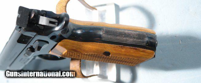 Description: ITM SOLOTHURN SWISS MADE AT84 OR AT84S (CZ-75) 9MM D.A. BLUE PISTOL NEW IN BOX. Like new in plastic box with extra magazine(just like one in gun), cleaning brush and allen wrench(for rear sight). Mint bore appears unfired. Factory checkered wood grips. Prime example. Rare to find in the USA. Only imported a couple of years by Action Arms of Philadelphia. SOLD |