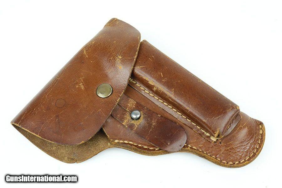 Description: This is a WW2 production Nazi CZ model 27 pistol rig. The pistol is in about 96% condition with some light finish loss on the right side of the slide, minor trigger wear, and very light patina on the front strap. Nice wartime finish and waffen proof stamped. Excellent bakelite grips. Near mint bore rates at 9.5/10. Comes with a total of two original magazines. Rig completed by unmarked but original holster. SOLD Curio/Relic: Yes Handgun Caliber: .32 ACP (7.65x17mm Browning SR) Manufacturer: CZ Model: 27 Serial Number: 382764 Condition: ~96% Bore Condition: 9.5/10 Manufacture Date: 1940s |