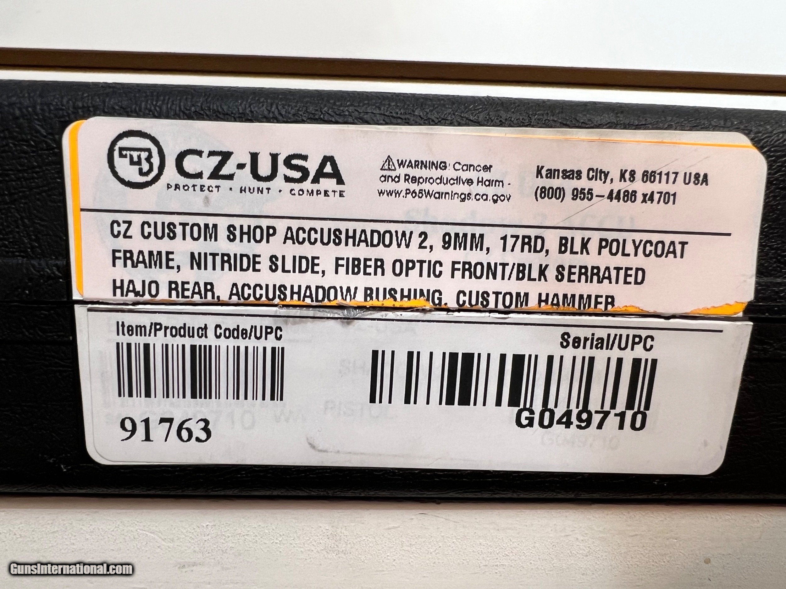 new CZ 75 AccuShadow 2 Custom Blk 9MM 2X18rd new in hard plastic case