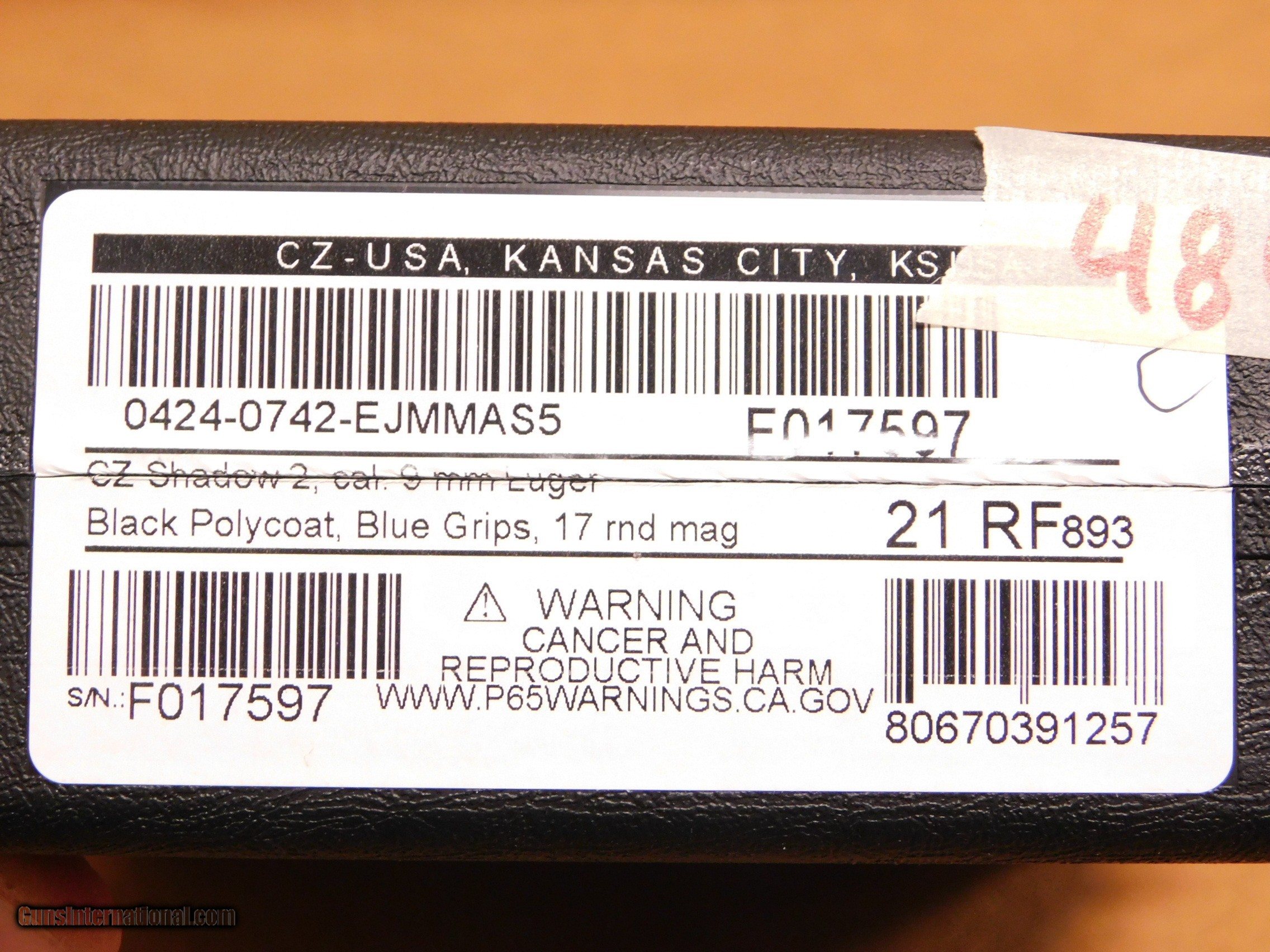 Description: This is a factory new CZ Shadow 2 "Black & Blue", with a black nitride finish and blue aluminum grips. Starting from scratch, CZUB engineers took the best features of the original Shadow and improved upon them, creating the Shadow 2, with features such as a higher beavertail and undercut trigger guard and a contoured slide. The Shadow 2’s swappable mag release has an adjustable, extended button with three settings to allow shooters to set it in the spot most comfortable for them. Best of all, new trigger components give smooth DA and crisp, clean SA while drastically reducing trigger reset. A hardy nitride coats the entire pistol, leaving it nearly impervious to corrosion, while the frame gets an additional layer of our black Polycoat finish. Thin blue aluminum grips have healthy checkering to match the fine front and backstrap checkering of the pistol itself. Sitting atop the slide are a set of target sights — fiber optic on front and a serrated, black HAJO rear SOLD Handgun Caliber: 9x19mm Parabellum (9mm Luger, 9x19mm NATO) Manufacturer: CZ Model: Shadow 2 Serial Number: F017597 Barrel Length: 5 |