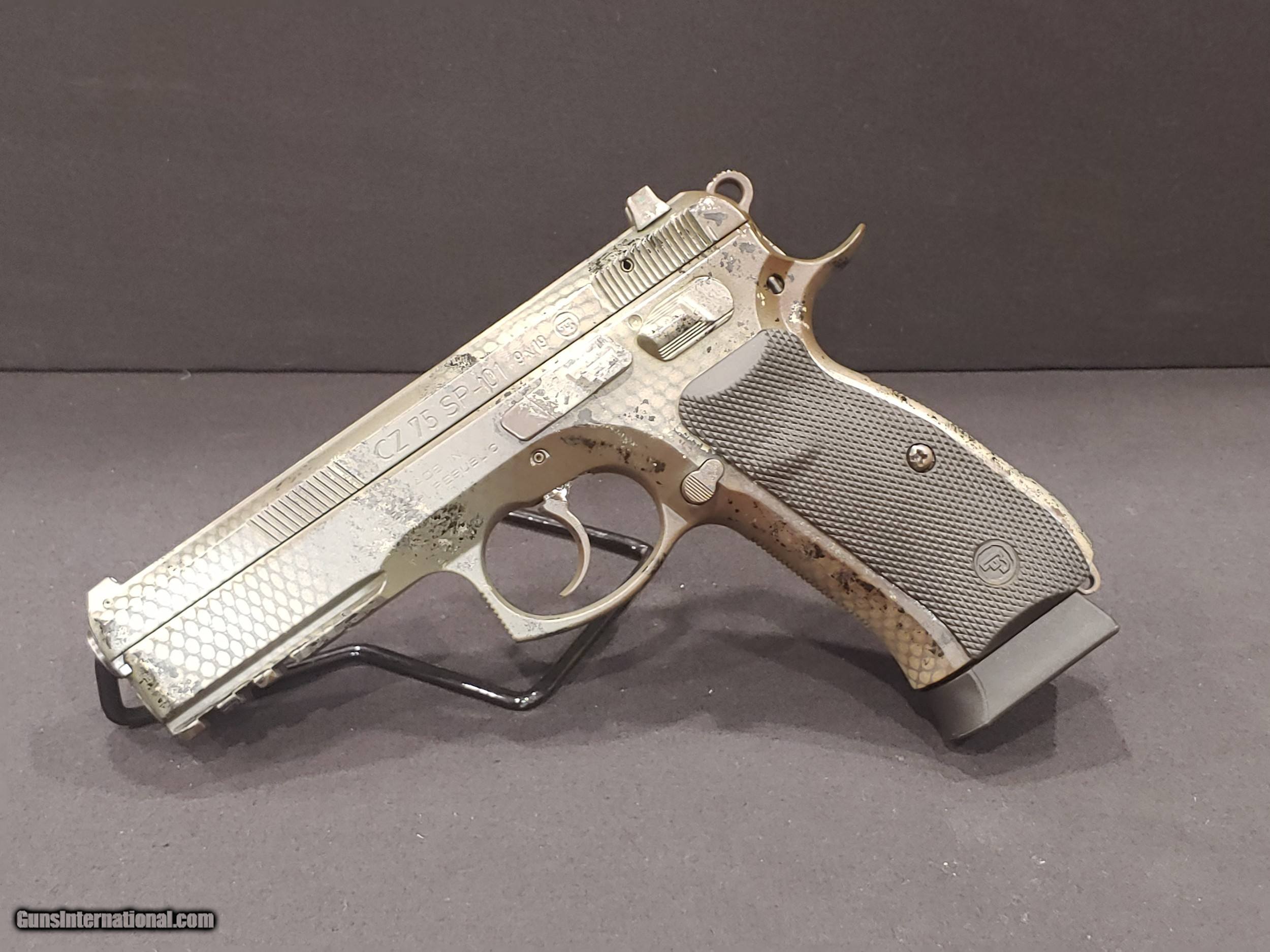 Description: The CZ 75 SP-01 is the first full-size handgun from CZ to feature the improved manufacturing technology and ergonomics of the NATO-approved CZ 75 Compact P-01 model. Featuring an integral 1913 accessory rail on the dust cover, rubber grip panels, and CZ's corrosion-resistant poly coat finish, the SP-01 is the newest model to join the family of pistols based on the CZ 75 (SA/DA) platform. Borrowing from the improved grip geometry of the compact P-01, the SP-01 utilizes an extended beavertail to protect the shooter's strong hand as well as allowing for a deeper and more secure grip. This comes with 2 magazines and a CZ-case. Pre-Owned - CZ-SP-01 9mm Handgun