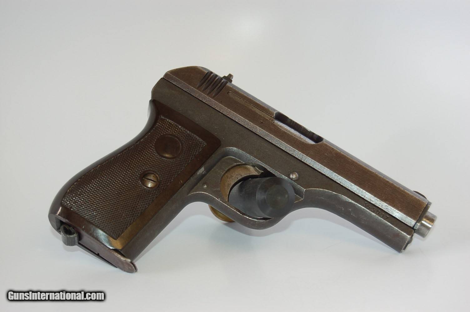 Description: We have an “fnh” code variation, two-toned, .32 ACP, CZ 27 (vz. 27) pistol in good condition (70%+). Serial Number: 365,097 (right on frame and top of slide). Serial numbers for “fnh” CZ 27 pistols range from approximately 261,000 to 476,000. Perfect mechanical condition. Excellent, bright bore. This “fnh” coded pistol retains 95% of the original military matte blue finish, which is turning to dark purple on the slide, and has silvered slightly at the muzzle as well as along some of the raised edges and projections. The trigger, hammer, and extractor retain most of their original straw color. This pistol displays a Nazi-German Military “eagle/WaA 76” WaffenAmt acceptance mark (on right frame, top slide, and barrel). The barrel is stamped with an “eagle clutching a swastika” German Military test proof mark (no serial number). The top of the slide is marked with the Nazi proof followed by serial number (365,097). Left side of the slide is marked “fnh Pistole Modell 27 Kal. 7,65”. This pistol is fitted with original one piece checkered Bakelite (early plastic) grips. The pistol is complete with an original factory magazine stamped on the bottom of the base “P. Mod. 27”. In an effort to hide the location of factories producing weapons, in June 1941, the Germans introduced a letter code system to replace factory names. The ?eská zbrojovka [CZ] factory received the code letters “fnh”. In the case of the CZ 27, it was not used until mid-1943. The “fnh” was added to the left slide marking and the “BÖHMISCHE WAFFENFABRIK A.G. IN PRAG” marking was removed from the slide top. Early “fnh” marked pistols still had the CZ logo on the grips, which was soon removed. This is a rather common WW2 German-issued pistol in uncommonly nice condition. CZ 27 was one of the most widely-issued non-German pocket pistols of WW2. They are extremely well-made and overbuilt. While most CZ 27 variants are quite common, it is difficult to find early pistols like this one in such exceptional condition. The finish on early CZ 27 pistols, with serial numbers ranging from 20,500 to 230,000, was bright blue. As the production progressed, the finish changed to dull blue, then to half blue and half phosphate, and finally to all phosphate. In March 1939, Germany occupied all of Czechoslovakia, and in early 1941, all CZ 27 pistol production was diverted to the German war effort. Czechoslovak sources put the beginning serial number of German Military production at 20,500. Between 620,000 and 650,000 CZ 27 pistols were manufactured in total, 452,500 of those under German occupation. This pistol is a fine example of an occupation-made CZ. This piece is from an elderly surgeon, soldier, diplomat who has collected guns from around the world for 60+ years. For more info visit this ://hoosierarmory/products/handguns-cz-icn8332-480 SOLD Curio/Relic: Yes Manufacturer: CZ Model: 27 Serial Number: 365097 Caliber Info: .32 Condition: used Action: single |