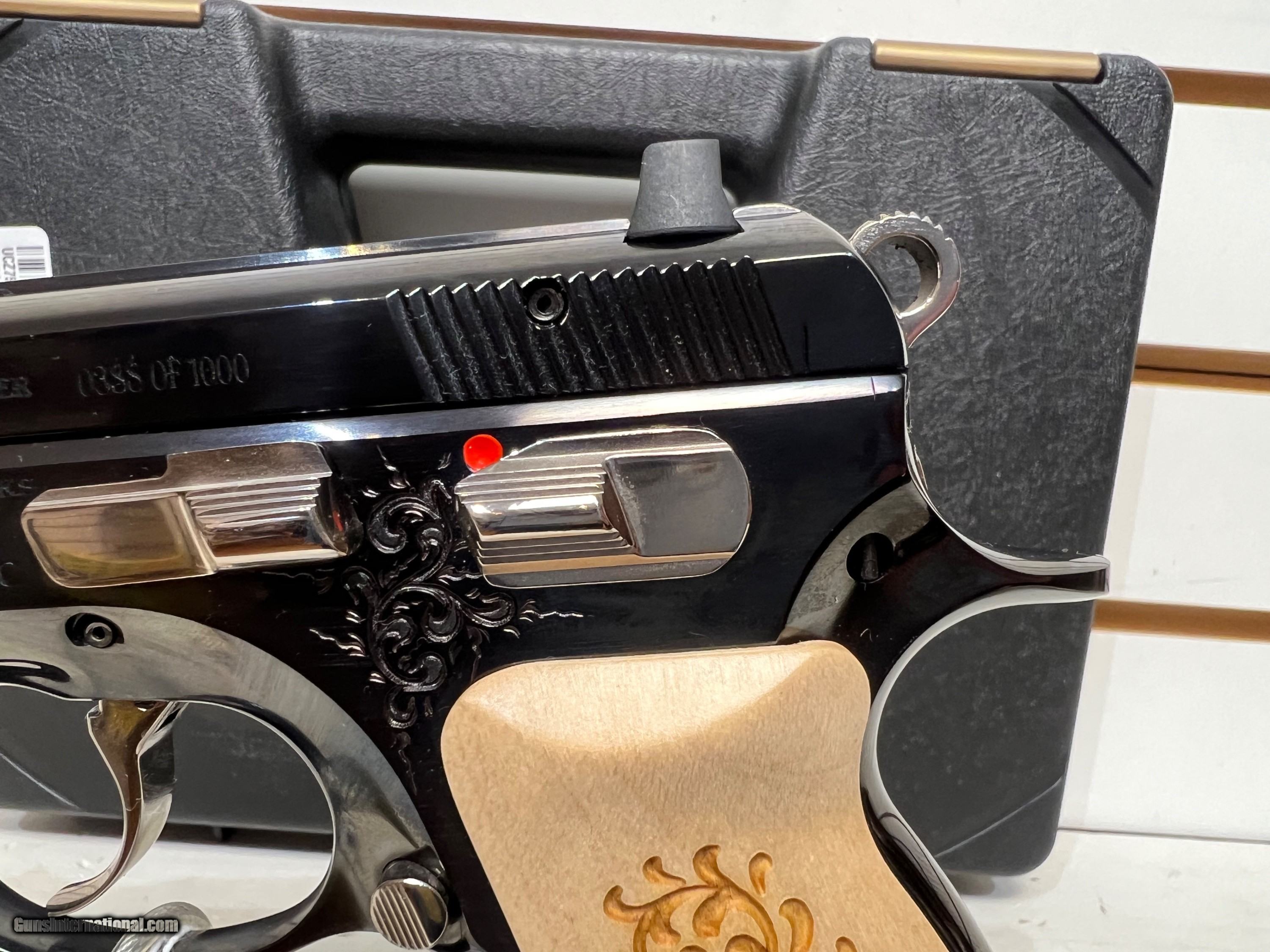 Description: Used CZ 75B 45th Anniversary 9mm, with Box, 3 mags 388 out of 1000 Buyer pays shipping Millers Gun Center Located in New Castle, Delaware "Home of TAX-Free shopping" No Credit Card Fees Send Gun international inquiry and then call 302-328-9747 to complete your purchase SOLD Handgun Caliber: 9x19mm Parabellum (9mm Luger, 9x19mm NATO) Manufacturer: CZ Model: 75B Serial Number: 0388 |