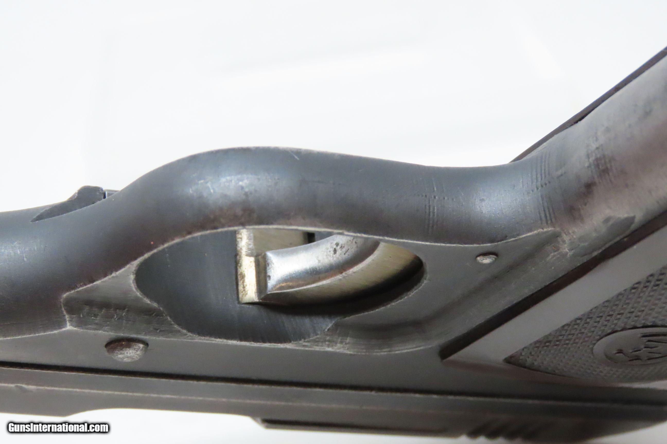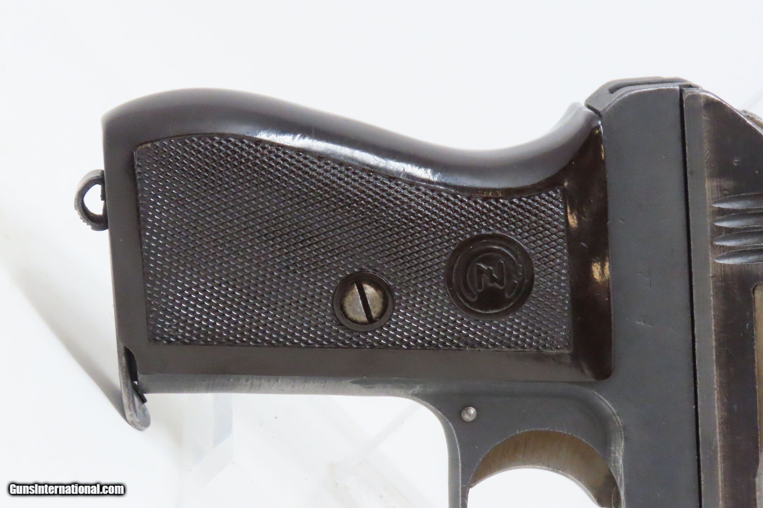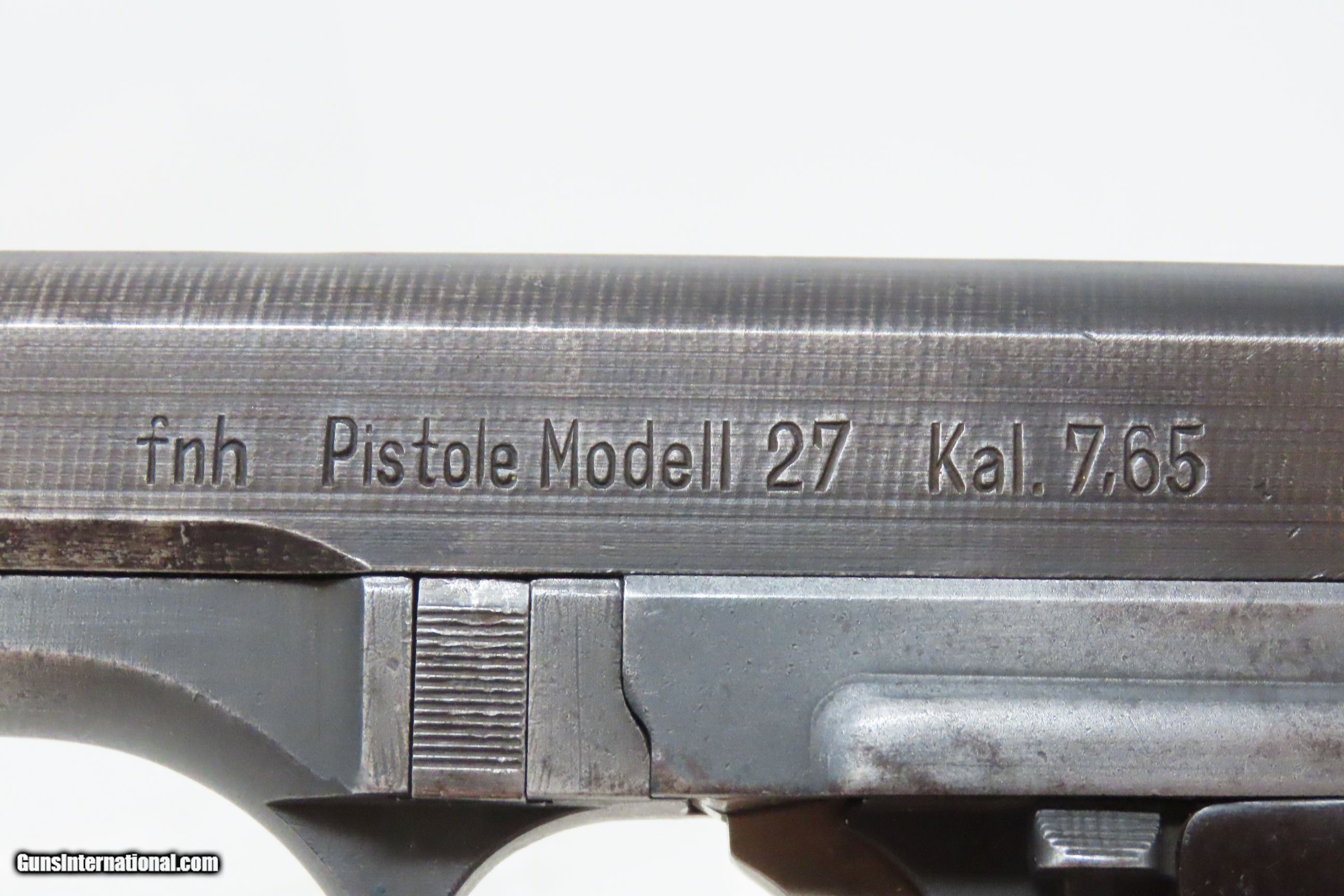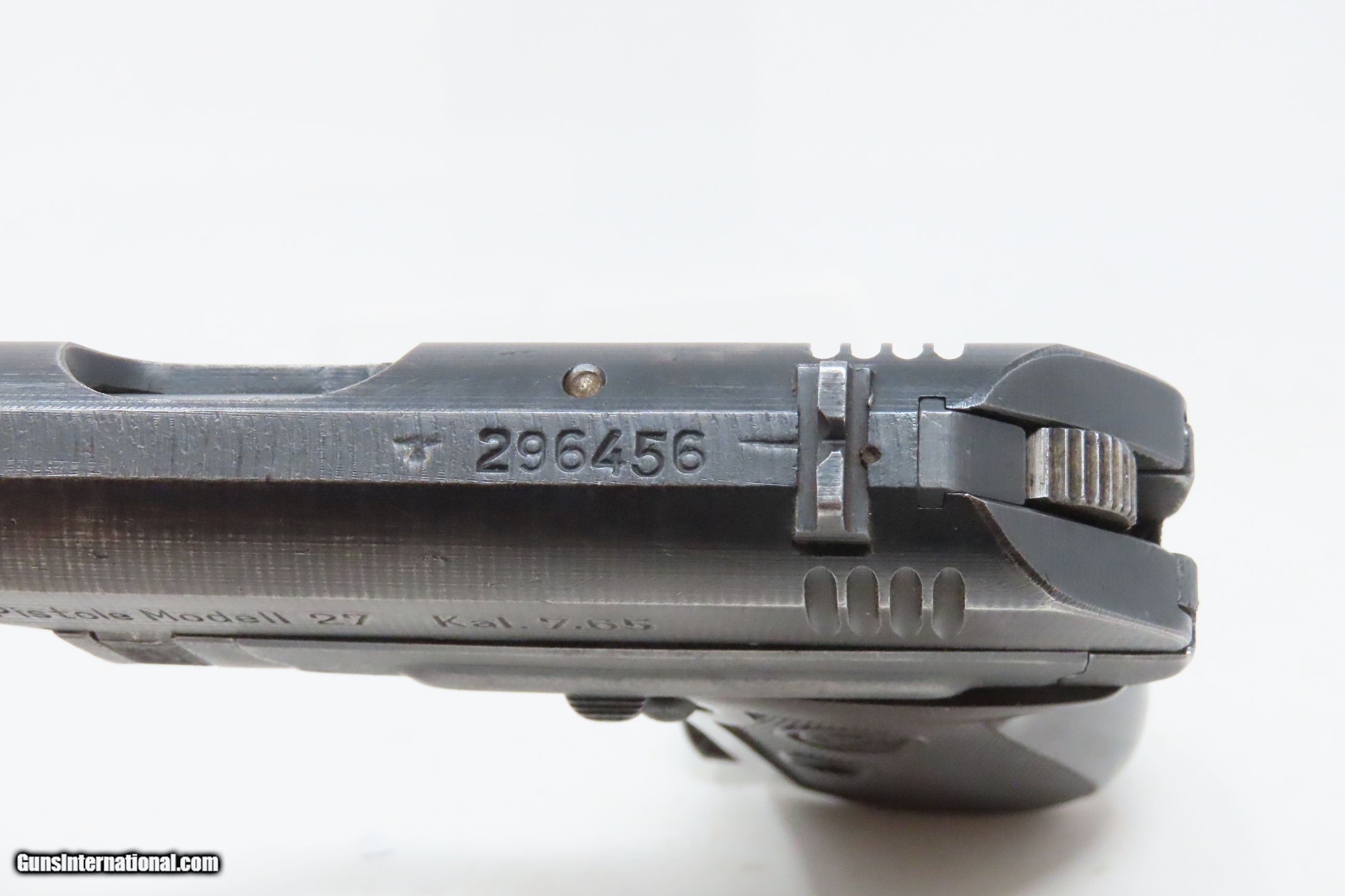 Description: WORLD WAR II Third Reich German OCCUPIED CZECH “fnh” Code CZ 27 Pistol C&R Blue Finished 7.65mm GERMAN Occupied Czechoslovakia Here we present a C&R Third Reich German CZ 27 Pistol, made circa 1943 in German Occupied Czechoslovakia. The Model 27 was adopted by the Third Reich upon their seizure of ?eská zbrojovka after their invasion and occupation in 1939. Many of these semi-automatic, .32 ACP blowback pistols were manufactured until the end of the war, becoming somewhat less finished toward the end in an attempt to save on cost, time and resources. The machining marks grew more visible and the blue applied to the earlier guns was changed to a phosphate finish. Many of these were put in the hands of officers and police during World War II. The pistol is complete with an original factory magazine stamped on the bottom of the base “P. Mod. 27”. In an effort to hide the location of factories producing weapons, in June 1941, the Germans introduced a letter code system to replace factory names. The ?eská zbrojovka [CZ] factory received the code letters “fnh”. In the case of the CZ 27, it was not used until mid-1943. The “fnh” was added to the left slide marking and the “BÖHMISCHE WAFFENFABRIK A.G. IN PRAG” marking was removed from the slide top. Early “fnh” marked pistols still had the CZ logo on the grips, which was soon removed. Serial numbers for “fnh” CZ 27 pistols range from approximately 261,000 to 476,000. This specimen is marked “fnh Pistole Modell 27 Kal.7,65” on the left side of the slide with various Third Reich German acceptance marks throughout. The right side of the frame is marked “Eagle/WaA76”, and the receiver is marked with “Eagle/Swastika”. The overall condition is very good. Some original finish has been preserved. Excellent action. Shiny bright bore with sharp rifling. Legible markings. Good grip with less than average wear from handing. Visible numbers match. This firearm is classified as a Curio & Relic. Barrel is 3-3/4 inches. Caliber: .32 ACP (7.65mm Browning) Overall condition as seen in photos. Very Fast. Very Safe. FREE SHIPPING. Will need to be sent to your local FFL or C&R licensee. This firearm is classified as a Curio & Relic. Guaranteed AUTHENTIC & Includes CERTIFICATE OF AUTHENTICITY. ancestryguns $1050 #230170 SOLD Curio/Relic: Yes |